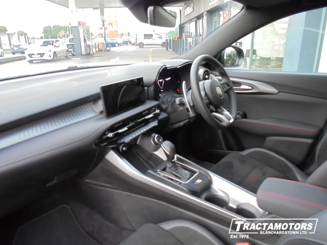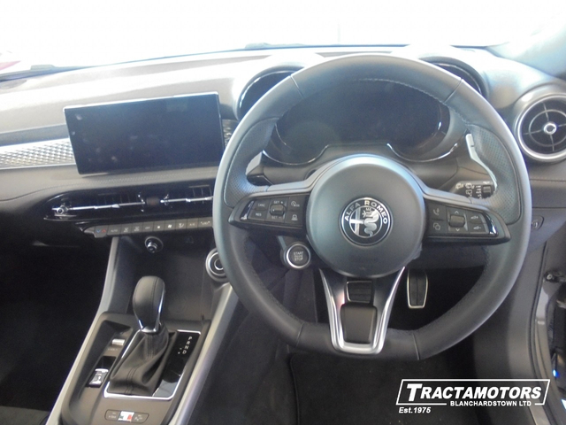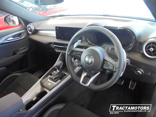 ALFA ROMEO TONALE VELOCE, 1.3 280 BHP PLUG IN HYBRID AUTOMATIC, SPEC INCLUDES 10.25 RADIO TOUCHSCREEN, BLUETOOTH AUDIO STREAMING, VOICE CONTROL WITH NAVIGATION, APPLE ANDROID CAR PLAY WITH WIRELESS CHARGING PAD, FULL TFT INSTRUMENT CLUSTER, KEYLESS ENTRY, 4 WAY ELECTRIC LUMBAR SUPPORT, FRONT ARMREST,REVERSE CAMERA WITH BACK UP LINES, POWERLIFT BOOT, FRONT AND REAR PARKING SENSORS, DUAL ZONE AIR CONDITIONING, ALARM, AUTO LIGHTS AND WIPERS, FORWARD COLLISION WARNING, ADAPTIVE CRUISE CONTROL, LANE SUPPORT SYSTEM, LANE SUPPORT, TRAFFIC SIGN RECOGNITION, 18 INCH ALLOYS, ELECTRIC FOLDING MIRRORS, VELOCE STANDARD SPECIFICATION INCLUDES 19 INCH WHEELS, RED PAINTED BRAKE CALIPERS, ALUMINIUM PEDALS, AND DOOR SILLS, ALUMINIUM PADDLE SHIFT. FOR MORE INFORMATION PLEASE CONTACT OUR SALES TEAM ON 018216622