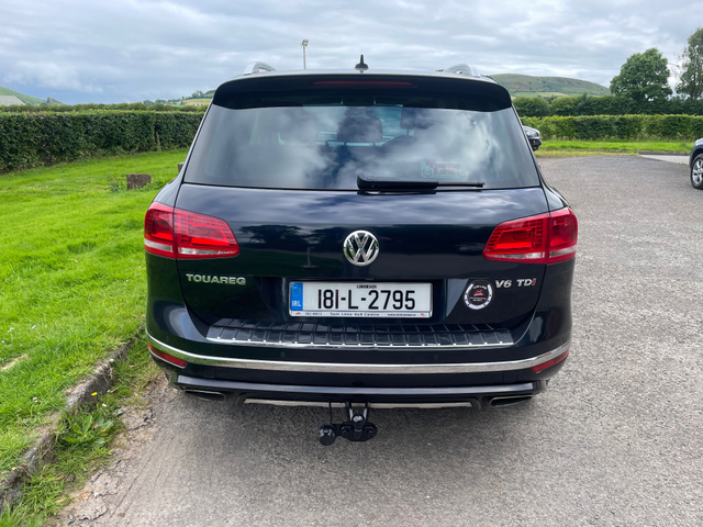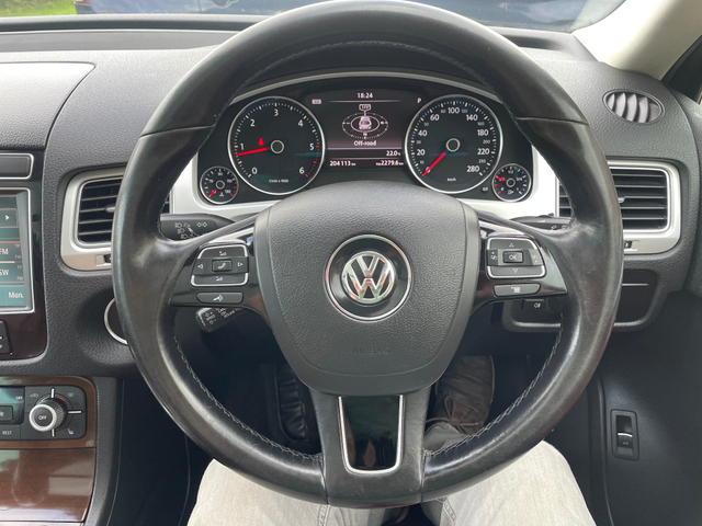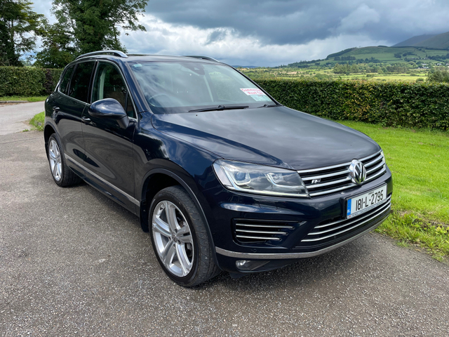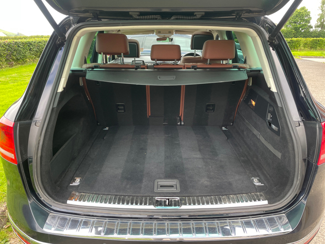 €26800 plus VAT Stunning VW Touareg 3.0 TDi V6 in Dark Navy Metallic with Tan Leather Interior, R-Line model with full panoramic sunroof, upgraded alloys, memory seats, reversing camera and parking sensors, full vat invoice available, 2 x original keys, fully serviced and guaranteed. Tom Lane 4x4 Centre Air Conditioning, Air bags, Anti theft system, Bluetooth, Central locking, Electric windows, Electronic brakeforce distribution (EBD), Fog lights, Multi Function Steering Wheel Controls, Parking Sensors, Power steering, Privacy Glass, Roof Rails, Traction control (ASR)