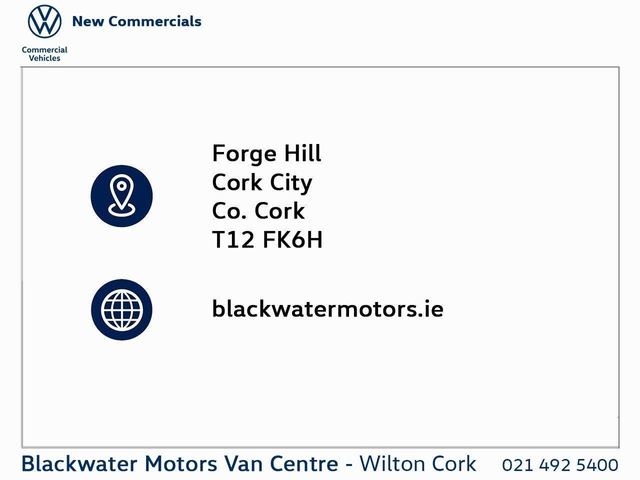 | Contact info: | Blackwater Motors Van Centre University Hall Industrial Estate Sarsfield Road Wilton County Cork Ph: 01-4925400 |