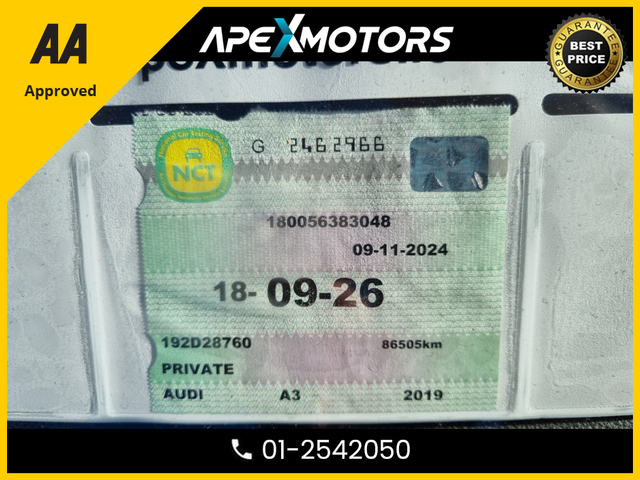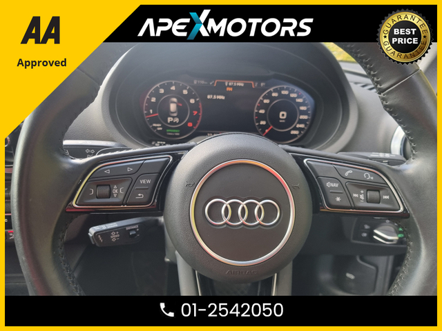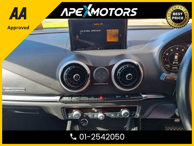 Welcome to APEXMOTORS.ie , an AA APPROVED INDEPENDENT DEALERSHIP We are one of Irelands Leading Providers of Quality Approved Used Cars and Light Commercials All Vehicles are fully Inspected by AA Approved Mechanics , All Vehicles are Cartell History Checked and Greenlight Verified * FINANCE ARRANGED * 30 TFSI SPORT LUXURY PKG * HEATED BLACK LEATHER INTERIOR * DIGITAL DASH * AA APPROVED * 101 SAFETY CHECKLIST * AUTOMATIC (DSG) * IMMACULATE * COLOUR REVERSE CAMERA * TOP-SPEC * LOW LOW KMs * ADAPTIVE CRUISE * NEW NCT SEP-26 * LOW TAX * 12-MONTH ROADSIDE ASSIST * STAMPED SERVICE HISTORY * ONE VERY CAREFUL OWNER * CARTELL HISTORY CHECKED * FULLY SERVICED * TRADE IN WELCOME * www.apexmotors.ie * CALL 01-2542050 or * WHATTSAPP 087-18-777-81 * WE ARE AN *AA* APPROVED USED CAR DEALERSHIP * ALL CARS GO THROUGH *AA APPROVED* 101 POINT SAFETY CHECKLIST * EXCESS 250 VEHICLES IN STOCK * ALL CARS IN FIRST CLASS CONDITION INSIDE & OUT * ALL VEHICLES ARE NCT TESTED, SERVICED, PROFESSIONALLY VALETED * COMPREHENSIVE AND EXTENDED WARRANTY AVAILABLE * CARTELL DOCUMENTED VERIFICATION * NATIONWIDE DELIVERY AVAILABLE * LOCATED -- EXIT-6 M50 (EIRCODE A86 YC84) * PLEASE CALL OUR SALES TEAM TODAY 01-2542050 or WHATTSAPP 087-1877781 * MON-FRI 2-6PM (Morning by appointment) and ALL DAY SAT 9-5PM * www.ApeXmotors.ie * Because we value your Business.. Full Service History, Perfect working order, Price Or Near Offer, 3 Month Warranty, 6 Month Warranty, 12 Month Warranty, Trade in accepted, Air Conditioning, Central Locking, CD Player, Immaculate condition, Electric Windows, Airbag, Alloy Wheels, Cruise Control, Electric Mirrors, Electric Seats, Fog Lamps, Immobiliser, Leather Upholstery, Rear Spoiler, Full Leather, Privacy Glass, Heated Seats, Automatic Wipers, Automatic Lights, Centre Armrest, Luggage Cover, Multi-function steering wheel, Climate Control, Traction Control, Metallic Paint, Multiple Air Bags, Anti-Theft System, Parking Sensors, Bluetooth, Remote Central Locking, EBD, Electronic handbrake, Folding rear seats, Isofix, Hill holder, Roadside assistance, History Checked, Finance Checked, Heated Front Seats, Reversing Camera, Front Parking Sensors, Electro Chrome Rear View Mirror, Active Safety Braking / City Brake / Collision Alert, Adaptive Cruise Control, Stop/Start Button, Dual Zone Climate Control, Daytime Running Lights, Manufacturer Warranty, Manufacturer Warranty Remaining, External Devices Connectivity, Cup holders, Remote boot/hatch/rear door release, Stability control