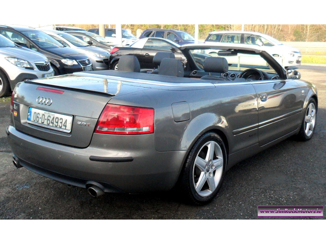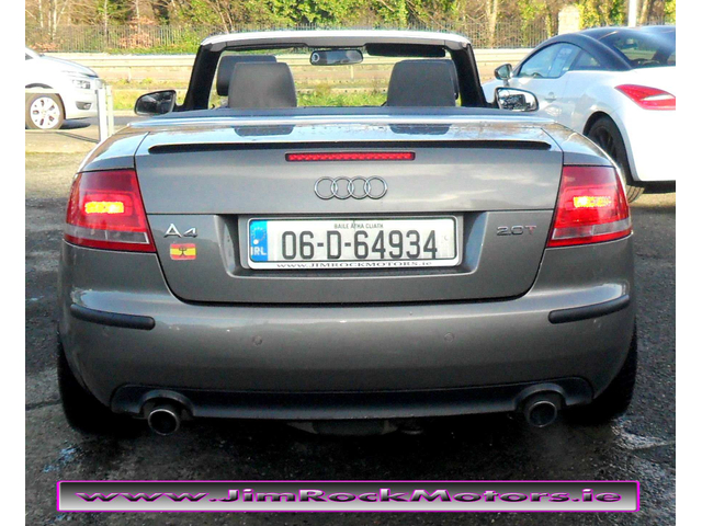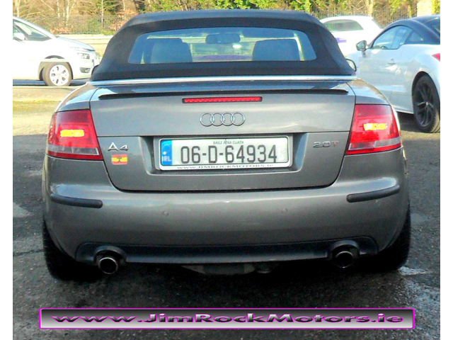 AUDI A4 CABRIO 2.0T........200 BHP........NCT 07/25........TAXED 02/25.........LEATHER IONTERIOR........REMOTE CENTRAL LOCKING.......2 KEYS........ELECTRIC WINDOWS AND MIRRORS.........ALLOY WHEELS.....FOG LIGHTS..........CD/RADIO..........HEATED SEATS........CRUISE CONTROL..........REAR LIP SPOILER.........WWW.JIMROCKMOTORS.IE Perfect working order, Price Or Near Offer, 3 Month Warranty, Trade in accepted, Air Conditioning, Central Locking, Immaculate condition, Electric Windows, Airbag, Alloy Wheels, Cruise Control, Electric Mirrors, Fog Lamps, Immobiliser, Leather Upholstery, Rear Spoiler, Full Leather, Privacy Glass, Multi-function steering wheel, Traction Control, Metallic Paint, Multiple Air Bags, Side Impact Protection, Anti-Theft System, Parking Sensors, Remote Central Locking, EBD, Isofix, History Checked, Finance Checked, Keyless Entry, Active Safety Braking / City Brake / Collision Alert, 2 Keys, Cup holders, Remote boot/hatch/rear door release, Stability control