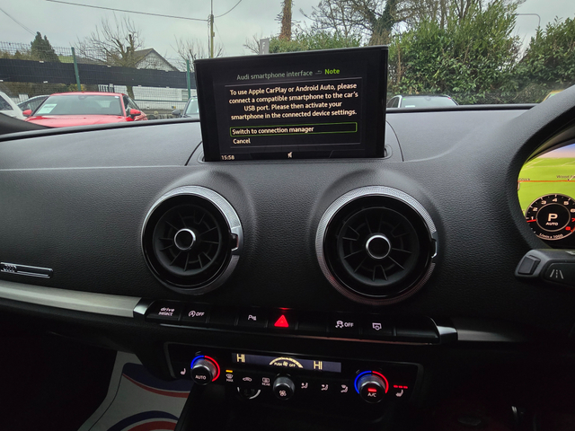 STUNNING AUDI A3 1.4 S LINE EDITION VIRTUAL DIGITAL COCKPIT CARPLAY ANDROID AUTO - SATNAV -- NAVIGATION REVERSING CAMERA -BLIND SPOT - PARKING SENSORS Dont miss out and contact Robert 0852057300 or Dave 0872884146. EAST COAST CARS SIMI MAIN DEALER - SPECIALISING IN GERMAN VW / AUDI / MERCEDES AUTOMATIC PETROL AND HYBRID MODELS // Dont miss out and contact Robert 0852057300 or Dave 0872884146. CREDIT CARD SECURES DEPOSIT ** We look forward to hearing from you and helping you find the car of your dreams. At East coast cars our goal is to provide all cars at a price that won't be beaten and to a standard second to none. We try and operate a no-haggle system where all our cars are already at the lowest possible price. Every car undergoes a 360 degree fully comprehensive car check by our in-house service team. This will include A full service. Warranty. Full vehicle preparation. Fresh NCT pass. We are proud to say that have a fantastic score card with Google reviews Safety, Reliability & Customer satisfaction are at the core of what we do. All 6 Month Warranty, Trade in accepted, Air Conditioning, Central Locking, CD Player, Immaculate condition, Electric Windows, Airbag, Alarm, Alloy Wheels, Cruise Control, Electric Mirrors, Electric Seats, Immobiliser, Leather Upholstery, Half Leather, Privacy Glass, Heated Seats, Automatic Wipers, Automatic Lights, Centre Armrest, Multi-function steering wheel, Roof Rails, Climate Control, Satellite Navigation, Traction Control, Metallic Paint, Multiple Air Bags, Xenon Lights, Anti-Theft System, Parking Sensors, Bluetooth, Remote Central Locking, Electronic handbrake, Sun blinds, Isofix, Hill holder, History Checked, Finance Checked, Apple Car Play, Android Auto, Heated Front Seats, Reversing Camera, Front Parking Sensors, Lane Departure Warning, Blind Spot Monitoring System, Active Safety Braking / City Brake / Collision Alert, Stop/Start Button, Drive Mode Selector, Dual Zone Climate Control, Daytime Running Lights, Cup holders