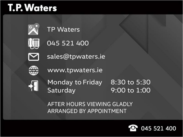 | Contact info: | T.P Waters Exit 13, M7 Kildare Town (2 mins from Kildare Village) County Kildare Ph: 045-521400 |