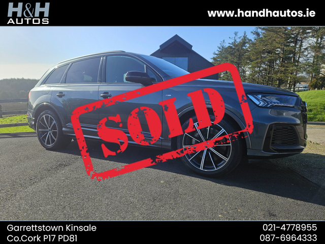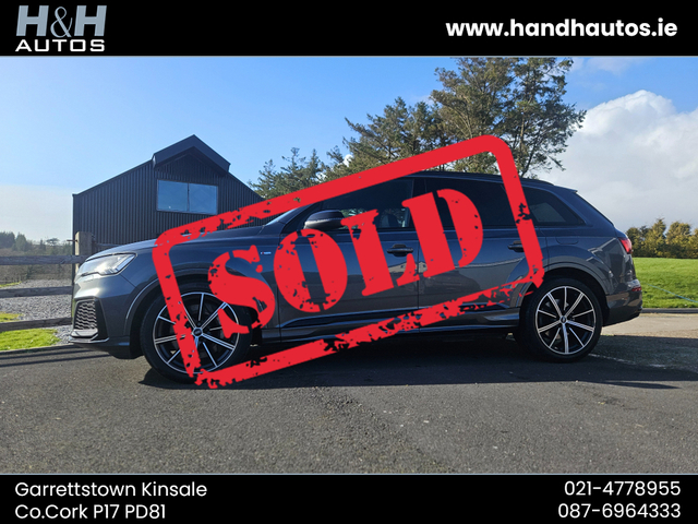 JUST ARRIVED IN STOCK THIS GORGEOUS AUDI Q7 SLINE BLACK EDITION QUATTRO 3.0 PLUG IN HYBRID AS NEW ,1 OWNER,JUST SERVICED FULL HISTORY,, WILL COME WITH YEARS TAX AND TWO NCT...HUGE SPEC..PLEASE CALL FOR MORE DETAILS... Central Locking, Electric Windows, Airbag, Rear Spoiler, Privacy Glass, Centre Armrest, Multi-function steering wheel, Roof Rails, Satellite Navigation, Traction Control, Metallic Paint, Anti-Theft System, Parking Sensors, Bluetooth, EBD, Isofix, Active Safety Braking / City Brake / Collision Alert, Stop/Start Button, External Devices Connectivity, Cup holders, Remote boot/hatch/rear door release, Stability control