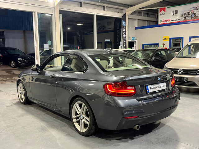 Bmw 220d M Sport Manual Coupe 181 bhp 2014 (141) In excellent condition throughout One previous owner Irish car from new New Nct just done Online purchase available Online sales Online trade in valuation Online finance approval You can also request a walk around video of any car to be sent directly to you, Finance available, to apply for finance visit Roskeencars.ie just serviced and professionally valeted All our prices include VRT, servicing, new NCT, and warranty as standard. Brief list of spec Aircon Auto lights Auto dimming rearview mirror Bluetooth connection Cruise control Daytime running lights Dual zone climate control Heated mirrors Heated seats Leather multifunction steering wheel LED interior lighting Multimedia media unit Park assist Parking sensors Three spoke steering wheel For more info please call 0873500350 Central Locking, Electric Windows, Airbag, Fog Lamps, Centre Armrest, Multi-function steering wheel, Traction Control, Anti-Theft System, Parking Sensors, Bluetooth, EBD, Isofix, Keyless Entry, Active Safety Braking / City Brake / Collision Alert, Stop/Start Button, External Devices Connectivity, Cup holders, Remote boot/hatch/rear door release, Stability control