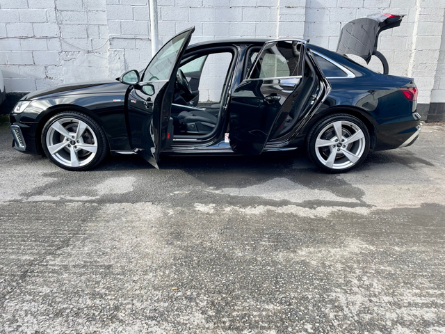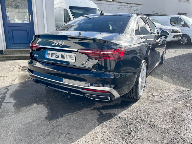 241 REG HIGH SPEC AUDI A4 35TDI S-LINE S-TRONIC SALOON IN EXCELLENT CONDITION, 2.0 TDI 163 BHP S-TRONIC AUTOMATIC, 1 OWNER FROM NEW WITH ONLY 24,000 KMS, FINISHED IN MYTHOS BLACK METALLIC WITH BLACK HALF LEATHER S-LINE INTERIOR TRIM, AIR CONDITIONING WITH 3 ZONE CLIMATE CONTROL, HEATED FRONT SEATS, SATELLITE NAVIGATION, BLUETOOTH INTERFACE, CRUISE CONTROL WITH SPEED LIMITER, FULL DIGITAL VIRTUAL COCKPIT, ELECTRIC WINDOWS, ELECTRIC FOLDING MIRRORS, REMOTE CENTRAL LOCKING WITH 2 KEYS, CENTER ARMREST, MULTI FUNCTION LEATHER SPORTS STEERING WHEEL CONTROLS, TOUCHSCREEN AUDIO AND MULTI MEDIA CONTROLS, FULL LINK SMARTPHONE INTERFACE WITH APPLE CAR PLAY AND ANDROID AUTO, 2 ISOFIX CHILD SEAT ANCHOR POINTS, REAR PRIVACY GLASS, EXTERIOR CHROME PACK, LED DAYTIME RUNNING LIGHTS AND HEADLIGHTS, 19" ALLOY WHEELS, REAR PARKING SENSORS WITH REVERSE CAMERA, LOW ROAD TAX 200 euro PER YEAR, FULLY SERVICED, 12 MONTHS WARRANTY, **** YOU CAN APPLY FOR FINANCE ONLINE ON OUR WEBSITE obrienmotorsltd.ie VIEWING BY APPOINTMENT ONLY WITH NATIONWIDE DELIVERY AVAILABLE ****