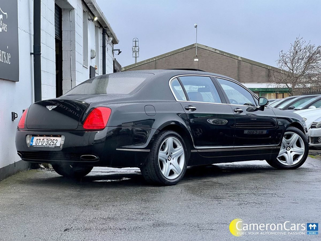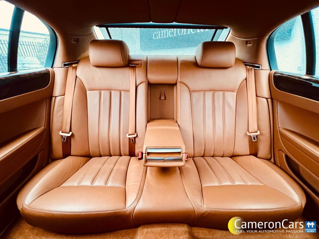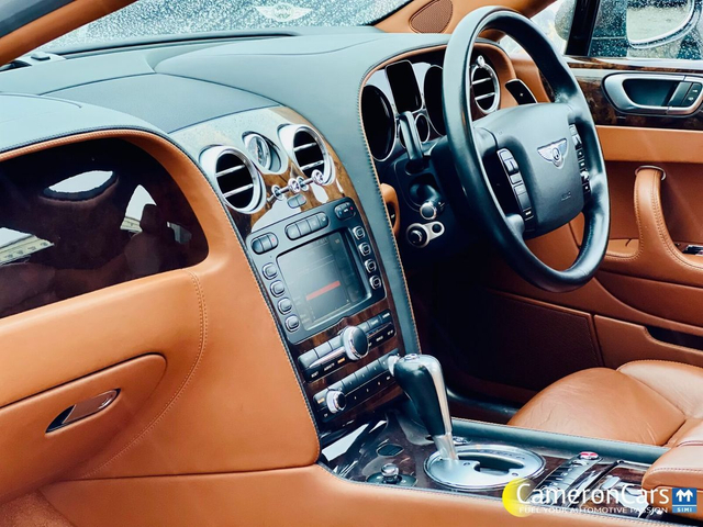Welcome to CameronCars! We are thrilled to have you here. Our dedicated team is ready to assist you in finding the perfect vehicle that fits your needs and budget. The *2007 Bentley Flying Spur LWB (Long Wheelbase)* in a black exterior with brown leather interior is a quintessential example of luxury, performance, and craftsmanship. Here's an overview of this exceptional vehicle Exterior - *Color* Black (likely a deep, glossy finish, Bentley's premium paint option) - *Body Style* 4-door luxury sedan - *Design* Classic Bentley styling with a bold, imposing grille, sleek lines, and a long wheelbase for added rear passenger space. - *Wheels* fitted with large, polished alloy wheels 20 inches for a commanding presence. - *Lighting* Xenon headlights with LED accents for a modern yet timeless look. Interior - *Color Scheme* Brown leather upholstery, offering a warm, luxurious contrast to the black exterior. - *Materials* Handcrafted leather seats, wood veneer oak trim and polished metal accents. - *Seating* 5-passenger capacity with extra legroom in the rear due to the long wheelbase. - *Comfort Features* - Heated and ventilated front and rear seats. - Power-adjustable seats with memory function. - Rear-seat entertainment system (optional). - Dual-zone or quad-zone climate control. - *Trim* High-quality wood and leather throughout the cabin, with Bentley's signature attention to detail. Performance - *Engine* 6.0-liter W12 twin-turbocharged engine. - *Power Output* 552 horsepower and 479 lb-ft of torque. - *Transmission* 6-speed automatic transmission with manual shift mode. - *Drivetrain* All-wheel drive (AWD) for superior traction and handling. - *0-100 kmh* in 4.0 seconds. - *Top Speed* Around 312kmh (electronically limited). Technology and Features - Premium Niam audio system - Navigation system with a central display. - Bluetooth connectivity - *Comfort* - Power-adjustable steering column. - Soft-close doors. - Advanced noise insulation for a serene cabin experience. - *Convenience* - Keyless entry and ignition. - Adaptive air suspension for a smooth ride. Luxury and Exclusivity - The *LWB (Long Wheelbase)* version of the Flying Spur offers additional rear legroom, making it ideal for chauffeur-driven use or for those who prioritize rear passenger comfort. - Bentley's reputation for bespoke customization means this vehicle could have been tailored to the original owner's preferences, including unique stitching, embroidery, or trim options. This combination of Deep Black exterior and Brown leather interior is timeless and elegant, perfectly reflecting Bentley's commitment to luxury and sophistication.