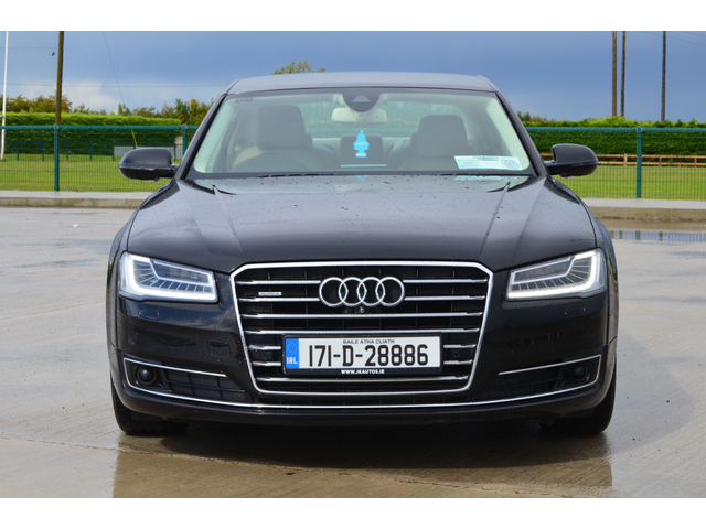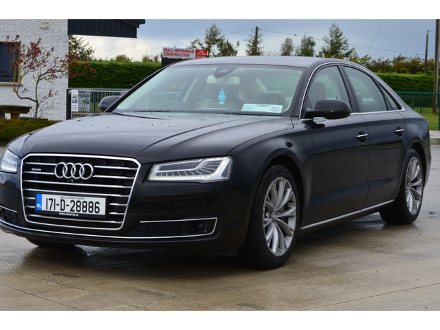 Currently in stock here at JK Autos is this immaculate 2017 (171) Audi A8 SE 3.0 TDI QUATTRO with 146,000KMS and many cool features i.e -Auto stop / start -Electric handbrake -Fog lamps -Cream leather interior -2 Keys -Alloy wheels -Cruise control -LED daytime running lights -Voice command -Front & Rear parking sensors Here at JK Autos we are proud to be an affiliated member of the SIMI offering you the customer peace of mind when buying from us. JK Autos aim to stock a wide range of carefully selected vehicles that have are sourced by ourselves through different networks we know and trust. We aim to offer vehicles that have been professionally prepared for sale and that have a full traceable history. Every vehicle that comes from ourselves carries a comprehensive warranty, a detailed history report and is inspected in house by our team of technicians prior to collection. Various finance packages are available a keen rates Call SALES on (059)8633449 or JONATHAN on (087)3826675 for more info. Trade in accepted, Air Conditioning, Central Locking, CD Player, Immaculate condition, Electric Windows, Airbag, Alarm, Alloy Wheels, Cruise Control, Electric Mirrors, Electric Seats, Fog Lamps, Immobiliser, Leather Upholstery, Full Leather, Interior Wood Finish, Heated Seats, Automatic Lights, Centre Armrest, Multi-function steering wheel, Climate Control, Satellite Navigation, Traction Control, Metallic Paint, Xenon Lights, Anti-Theft System, Parking Sensors, Bluetooth, EBD, Electronic handbrake, Folding rear seats, Isofix, Hill holder, History Checked, Finance Checked, Keyless Entry, Heated Front Seats, Reversing Camera, Front Parking Sensors, Wireless Smartphone Control, Active Safety Braking / City Brake / Collision Alert, Stop/Start Button, Touch Screen Media Control, Driver Fatigue Warning, Drive Mode Selector, Dual Zone Climate Control, Daytime Running Lights, 2 Keys, External Devices Connectivity, Cup holders, Remote boot/hatch/rear door release, Stability control