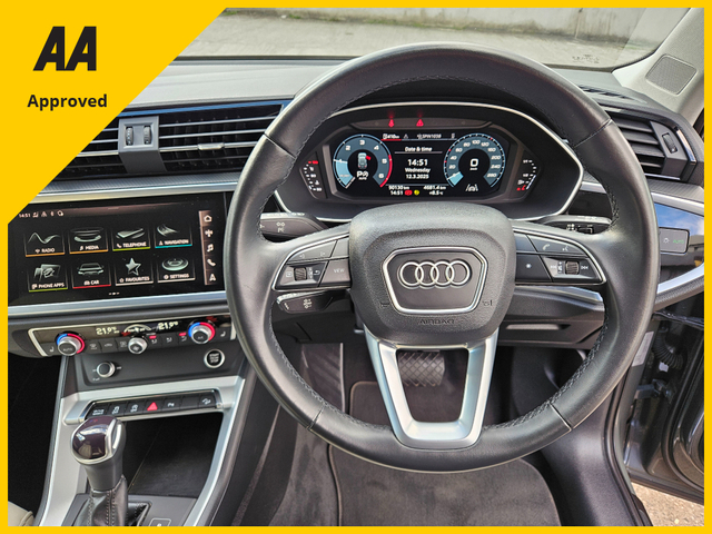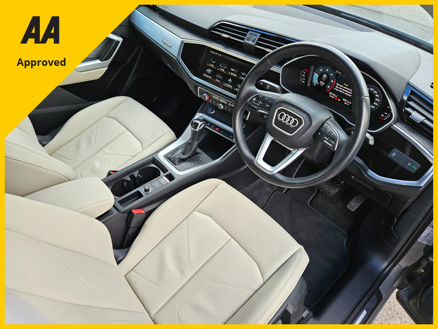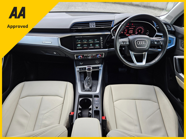 * 2022 AUDI Q3 SE MODEL * 2.0 DIESEL WITH AUTOMATIC GEARBOX * COMES IN NICE METALLIC CHRONOS GREY COLOUR * 18 INCH ALLOY WHEELS (4 NEW TYRES) * CREAM LEATHER INTERIOR * HEATED SEATS * PARKING SENSORS (FRONT AND REAR) * REVERSE CAMERA * CRUISE CONTROL * LANE ASSIST * DIGITAL DASH * APPLE/ANDROID CAR PLAY * SAT NAVIGATION * ELECTRIC TAIL GATE * DUAL CLIMATE CONTROL * PRIVACY GLASS * MULTI-FUNCTION STEERING WHEEL * USB CONNECTION * IRISH CAR FROM NEW * ONLY ONE PREVIOUS OWNER * SERVICE HISTORY * NCT TEST TILL 01/26 * LOW TAX BRACKET € 270 PER ANNUM * 56004 MILES / 90130 KM * 2 ORIGINAL KEYS * CAR LOOKS AND DRIVES VERY WELL * ANY INSPECTION WELCOME * TO APPLY FOR FINANCE PLEASE VISIT OUR WEBSITE WWW.GREENMILEMOTORS.IE * We are proud to be an AA approved and 5 star rated dealer. * All our cars have been through a 101-point AA approved inspection and comes with 12 months free AA membership, roadside assistance and breakdown. * This car has been checked by motor check.ie (full history report from new included HPI clear) to ensure peace of mind for the customer and to in still confidence when purchasing a pre-owned vehicle * All our cars come serviced, health checked and valeted * 3 months warranty included (12 months warranty available) * Trade-ins welcome * For more information or arrange viewings please call 0857444451 * Due to a high turnover in stock, we recommend that you contact our sales team to make sure the car is still available and to make an appointment