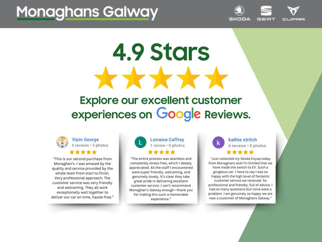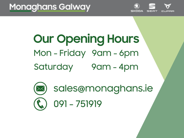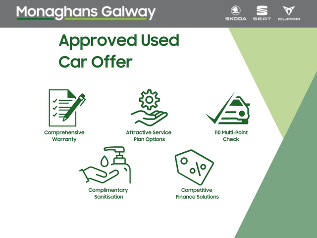** FINANCE AVAILABLE ** Please call our sales team on 091-751919 for a quote or more details. Check out our full range of used cars on galway.monaghans.ie! This car will come fully serviced by our award winning workshop, fully valeted & with a comprehensive warranty. Monaghans Galway is a family business, established in 1955. We pride ourselves on customer service and endeavour to provide the best experience possible. Our high Google review score of 4.9 stars is testament to this. Trade in accepted, Central Locking, Immaculate condition, Electric Windows, Airbag, Centre Armrest, Multi-function steering wheel, Satellite Navigation, Traction Control, Metallic Paint, Anti-Theft System, Parking Sensors, Bluetooth, EBD, Isofix, History Checked, Finance Checked, Active Safety Braking / City Brake / Collision Alert, Stop/Start Button, Touch Screen Media Control, 2 Keys, External Devices Connectivity, Cup holders, Remote boot/hatch/rear door release, Stability control