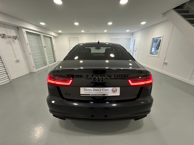 WWW.DENISDARCYCARS.IE VW/AUDI SPECIALISTS. 161 AUDI A6 S LINE BLACK EDITION 190BHP S TRONIC IN MYTHOS BLACK. SPEC INCLUDES, 20'' RS ALLOYS, LED LIGHTS, PRIVACY GLASS, HEADLIGHT WASHERS, PARKING SENSORS, AUTO LIGHTS/WIPERS, HEATED SEATS, MULTIFUNCTION LEATHER S LINE SEATS, CRUISE CONTROL, SAT NAV, CLIMATE AC 4 ZONE, ARMREST, KEYLESS START, BLACK PIANO DASH INLAYS, TWO KEYS, PADDLE SHIFT, SERVICE HISTORY, TIMING BELT AND WATERPUMP DONE. WE ARE LOCATED JUST OFF THE M3 MOTORWAY EXIT 9, 20 MINS FROM DUBLIN. Central Locking, Electric Windows, Airbag, Cruise Control, Privacy Glass, Centre Armrest, Multi-function steering wheel, Satellite Navigation, Traction Control, Anti-Theft System, Parking Sensors, Bluetooth, EBD, Isofix, Active Safety Braking / City Brake / Collision Alert, Stop/Start Button, External Devices Connectivity, Cup holders, Remote boot/hatch/rear door release, Stability control