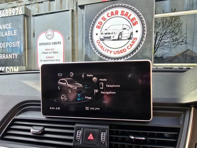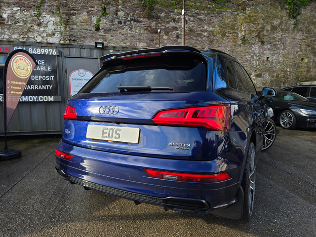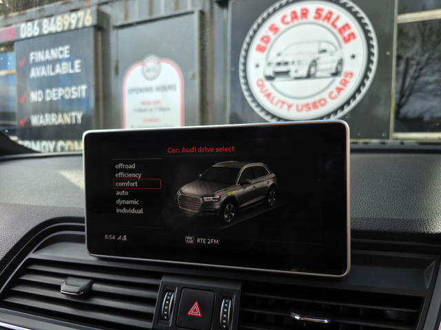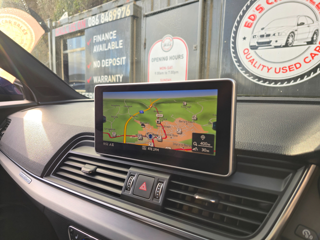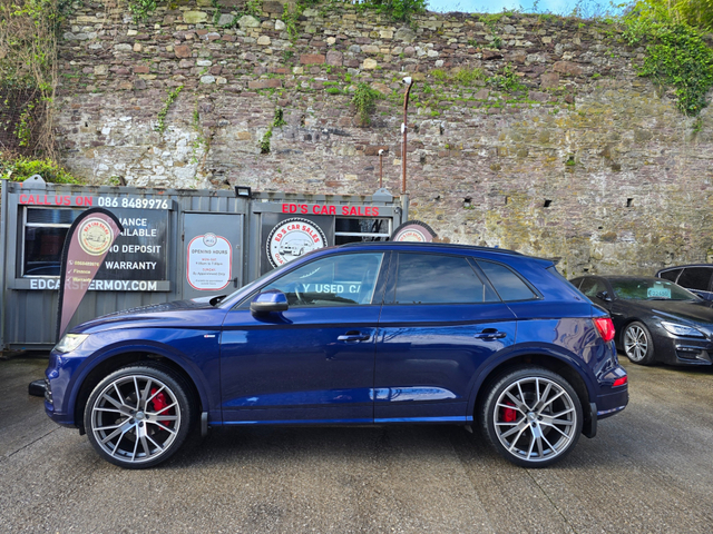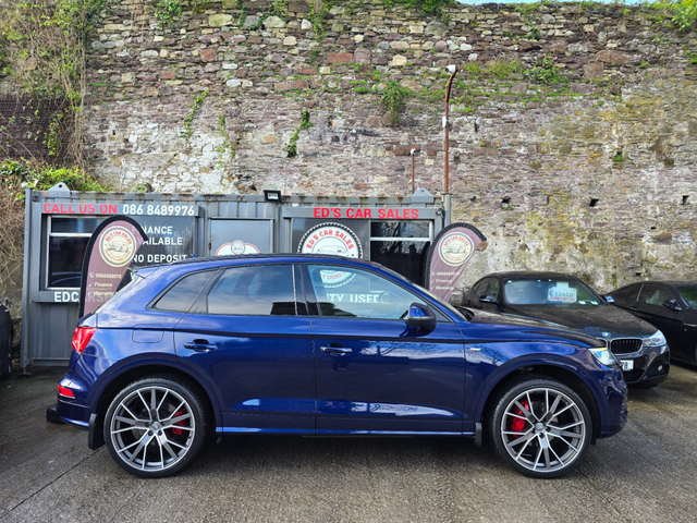 PRICE DROP !!!! FROM €42,950 TO €40,950. Audi Q5 S-Line 2.0 Tdi 40 , 190 Bhp S-Tronic Quattro 2019 (191) OFFERING NATIONWIDE 12 MONTHS WARRANTY PRICE €42,950. BOOK YOUR TEST DRIVE!!! Call Ed on 0868489976 New 2 Years NCT. R22 Alloy wheels with 4 New Tyres. 146,500 KM. Fully Just Serviced ! Motorcheck Report done . WARRANTY 12 MONTHS with Mapfre. You Pick - Free Delivery anywhere in Ireland - or - Full Tank !!! View All Carswww.edcarsales.ie FINANCE AVAILABLE. 0868489976 More Info *2019 (191) *Automatic , S-Tronic. *Annual Tax 400 Euro. *Trade in welcome. *Bang & Olufsen Sound System. *Driving Experience Control. *S Bucket Seats. *Front Seats Heated. *Digital Climate Control. *Road Sign Detection. *Cruise Control. *Digital Cockpit. *Wireless Charger. *Full LED Headlights. *Paddle shift control. *Full leather Steering wheel. *Multi-function steering wheel. *Auto lights. *Headlight washers. *Welcome home lighting. *Corner lights. *LED day time running lights. *LED tail lights. *Electric windows. *Electric, heated, folding mirrors. *Front parking sensors. *Rear parking sensors. *Reversing Camera. *Auto start (Economy mode). *Auto hold, hill assist. *Dual climate control. *Air conditioning. *Sat Nav. *Usb/Aux/Bluetooth. *Alarm and Immobiliser. *ISO Fix (for baby seat). *Front center armrests *Front fog lights. Unit 1, Connolly Street. Fermoy. Co. Cork P61 Y162 Central Locking, CD Player, Electric Windows, Airbag, Cruise Control, Rear Spoiler, Privacy Glass, Centre Armrest, Multi-function steering wheel, Roof Rails, Satellite Navigation, Traction Control, Metallic Paint, Anti-Theft System, Parking Sensors, Bluetooth, EBD, Isofix, Active Safety Braking / City Brake / Collision Alert, Stop/Start Button, External Devices Connectivity, Cup holders, Remote boot/hatch/rear door release, Stability control