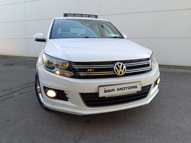 Just into stock this stunning 2015 Tiguan Edition R-Line 2.0TDi 140Bhp M6F in Pure white with R Line interior. - Just traded-in and in fantastic condition. - Dual Zone Climate Control. - Cruise Control & 18" Alloys. - R-Line pack with 18" Alloys - Full Alcantara heated Sports seats interior! - Full opening panoramic Sunroof - Sat Nav, sensors, rear camera - Top spec VW Tiguan - GENUINE CAR IN GREAT CONDITION. - FULL VW dealer SERVICE HISTORY. - Trade in price €16995. €15995 straight deal price. - SOLD FULLY SERVICED AND CHECKED BY VW TECHNICIANS, WITH WARRANTY. *SERVICE PLANS AVAILABLE ON SELECTED CARS* Hassle free Finance available onsite from our Dedicated Expert Motor Finance Advisors. For more details and to arrange a test drive contact our sales team today on 074 972 3462! Visit our website for a full list of new and used car stock www.srmotors.ie. Thank you for viewing. FULL MAIN DEALER FACILITIES. Authorised Service Agent for Volkswagen. Family Run Business. SIMI Member. AA Approved. Finance Arranged. Trade Ins Taken. All Cars Fully Serviced. All Cars Fully Valeted. All Cars History Verified. All Cars Warrantied. • ABS • Driver Airbag • Child Locks • Daytime Running Lights • ESP • Flat Tyre Indicator • ISO Fix • Multiple Airbags • Side Impact Protection • Xenon Headlights • Immobilizer • Auto Handbrake • Auto Lights and Wipers • Cruise Control • Hill Hold • Parking Assistance • Remote Central Locking • Satellite Navigation • Armrest • Bluetooth Phone • CD player • Dual Climate-Control • Heated Seats • Leather Multi-functional Steering Wheel • Lumbar Support • Mobile Device Interface (media-in) • Onboard Computer • Radio/CD/MP3 • Split Fold Rear Seats • Sports Seats • Touchscreen Stereo • USB • 18" Alloys • Chrome Package • Electric Mirrors • Electric Roof • Electric Windows • Front Fog Lights • Metallic Paint • Privacy Glass • Spoiler • Sports Pack • Sunroof • Tinted Windows • Extended Warranty • Full Service History • R-Line • Sat Nav • PARK ASSIST