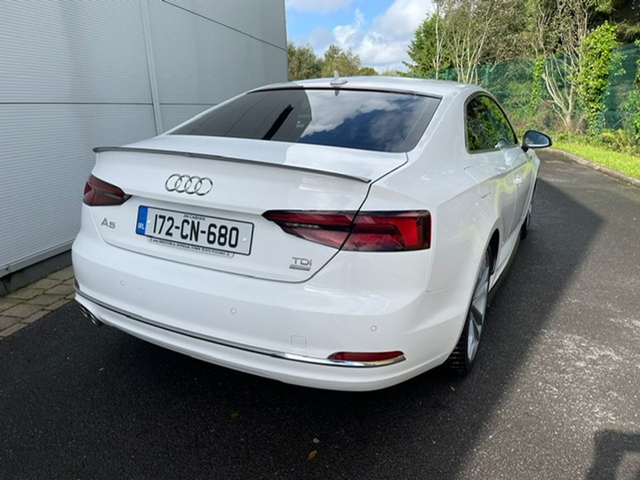 Just into stock this stunning 2017 Audi A5 2.0TDi 190Bhp SE Ultra 2dr Coupe. - Just traded-in and in fantastic condition. - Dual Zone Climate Control. - Upgrade 19" Alloy Wheels - Gloss Black front Splitter - Gloss Black side skirts - Gloss Black Lip Spoiler - Cruise Control & 19" Alloys. - Full leather Sports seats interior! - GENUINE CAR IN GREAT CONDITION. - FULL SERVICE HISTORY. - SOLD FULLY SERVICED AND CHECKED BY VW TECHNICIANS, WITH 12 MONTH WARRANTY. *SERVICE PLANS AVAILABLE ON SELECTED CARS* Hassle free Finance available onsite from our Dedicated Expert Motor Finance Advisors. Trade-ins considered at Retail Price €25,995 or take advantage of our Special Straight Sale Discount and drive away a bargain for only €23,995! For more details and to arrange a test drive contact our sales team today on 074 972 3462! Visit our website for a full list of new and used car stock www.srmotors.ie. Thank you for viewing. FULL MAIN DEALER FACILITIES. Authorised Service Agent for Volkswagen. Family Run Business. SIMI Member. AA Approved. Finance Arranged. Trade Ins Taken. All Cars Fully Serviced. All Cars Fully Valeted. All Cars History Verified. All Cars Warrantied. S&R Motors (Donegal) Ltd is your leading multi award winning Dealer in Donegal for over 25 years. We are the only Dealer in Ireland to have received the prestigious Volkswagen Retailer of the Year award in 2013, 2016 and 2018. We have an energetic and committed Team with years of experience in sales, after sales, service and parts. Feel free to browse our online inventory for new and certified pre-owned vehicles, contact our sales dept to schedule a test-drive, or inquire about our unique and industry leading finance packages. • Adaptive Cruise Control • Adjustable seats • Armrest • Bluetooth Phone • CD player • Climate Control • Cruise Control • Electric Folding Mirrors • Electric Windows • Heated Seats • Height adjustable drivers seat • Lumbar Support • Onboard Computer • Outside temperature meter • Radio/CD/MP3 • Rear View Camara • Remote Boot Release • Satellite Navigation • Split Fold Rear Seats • Traction control • USB • Car History Checked • Extended Warranty • Full Service History • ABS • Auto Lights and Wipers • Front Fog Lights • Immobilizer • ISO Fix • Parking Assistance • Rear Parking Sensors • Side Impact Protection • Traction Control • Xenon Headlights • 19' Alloys • Body Coloured Bumpers/Mirrors • Body Kit • Chrome Package • Leather Interior • Privacy Glass • Sideskirts • Sport Chassis • Sports Seats • Sports seats • Tinted Windows
