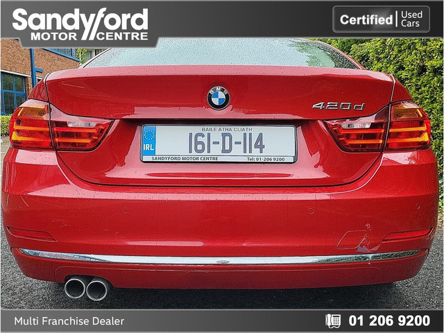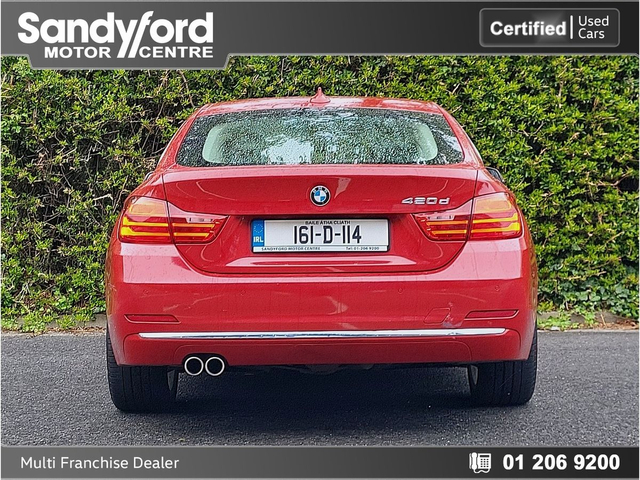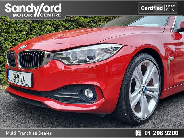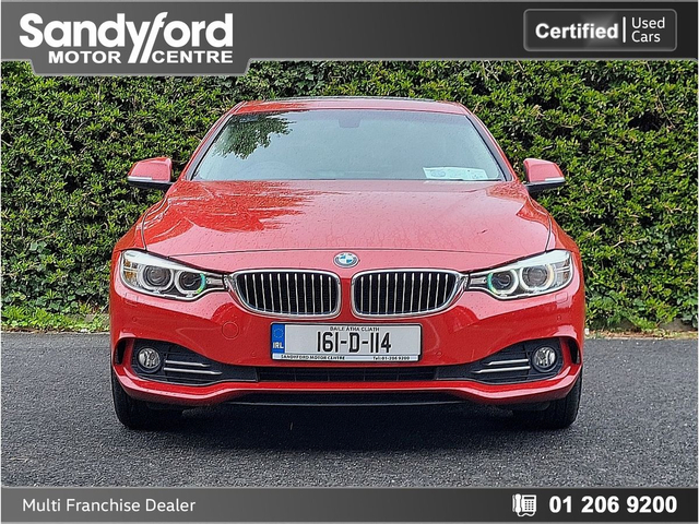 The 2016 BMW 4 series 420d Gran Coupe is a sleek and stylish vehicle powered by a 2.0-liter diesel engine, offering a perfect blend of performance and efficieny. With an 8-speed automatic transmission, it deliveres smooth gear shifts and a refined driving experience.The Luxury trim enhances comfort with premium features such as leather upholstery, advanced infotainment, and a higher level of interior refinement. Known for its dynamic handling and elegant design, the 420d is a great option for those seeking a sporty yet sophisticated driving experience. FOR FURTHER INFPORMATION OR TO BOOK A FREE TEST DRIVE PLEASE CONTACT OUR SALES TEAM ON (01) 206 9200 • Adjustable seats • Air Conditioning • Armrest • Bluetooth Phone • Climate Control • Cruise Control • Driver Knee Airbag • Electric Mirrors • Electric Sunroof • Heated Seats • Height adjustable drivers seat • Media Connection • Multi-Function Steering Wheel • Panoramic Sunroof • Power Tailgate • Rear armrest • Rear headrests • Satellite Navigation • Traction control • USB • Windows front + rear electric • Car History Checked • Finance Available • Full Service History • ABS • Auto Handbrake • Auto Lights • Auto Lights and Wipers • Foglights • Parking Assistance • Passenger Airbag • Rear Parking Sensors • Traction Control • 18' Alloys