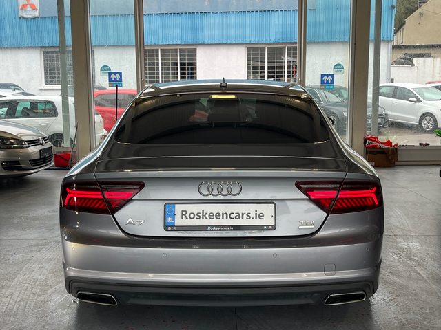 Audi A7 3.0 Tdi ultra 218 bhp Se Executive automatic 2016 (162) In mint condition throughout One previous owner New 20 alloys and tyres just fitted Online purchase available Online sales Online trade in valuation Online finance approval You can also request a walk around video of any car to be sent directly to you, Finance available, to apply for finance visit Roskeencars.ie just serviced and professionally valeted All our prices include VRT, servicing, new NCT, and warranty as standard. Brief list of spec Aircon Auto lights Auto dimming rearview mirror Bluetooth connection Cruise control Daytime running lights Dual zone climate control Electric handbrake Electric folding mirrors Heated mirrors Heated seats Isofix Leather multifunction steering wheel LED interior lighting Multimedia media unit Park assist Parking sensors Sat-Nav Three spoke steering wheel For more info please call 0873500350 Central Locking, Electric Windows, Airbag, Fog Lamps, Rear Spoiler, Centre Armrest, Multi-function steering wheel, Satellite Navigation, Traction Control, Anti-Theft System, Parking Sensors, Bluetooth, EBD, Isofix, Active Safety Braking / City Brake / Collision Alert, Stop/Start Button, External Devices Connectivity, Cup holders, Remote boot/hatch/rear door release, Stability control