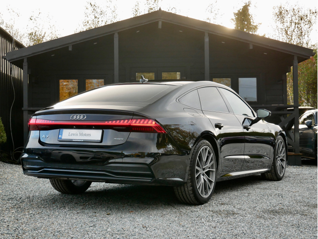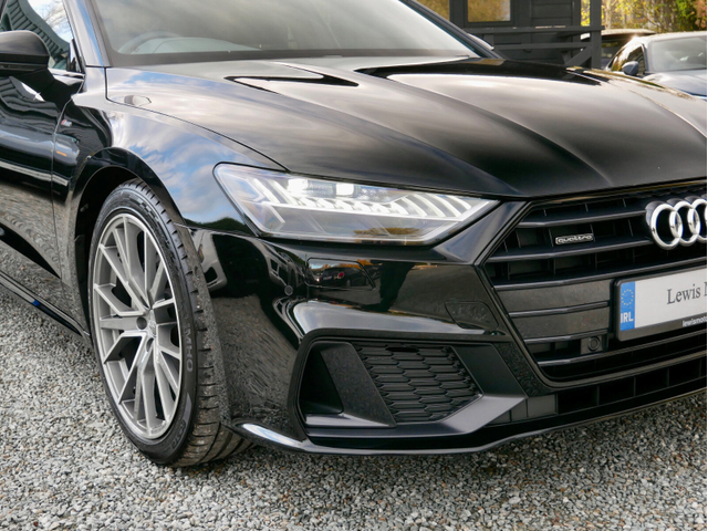 2023 Audi A7 S-Line 40 TDI Quattro Sportback is now in stock Presented in Mythos Black Metallic and powered by a turbocharged 2.0l diesel engine which produces 204BHP and is paired to a 7 Speed Automatic Transmission Joining this is a host of features which include Four wheel drive 20” Alloy wheels HD Matrix LED headlights Multiple Matrix Beam Separate DRL LED tail lights S-Line Sport Package S-Line exterior package Leather interior Sports front seats Scuff plates in door aperture Ambient lighting Climate control Sports suspension Leather wrapped multifunction steering wheel Drive select Power front seats with memory feature Heated front seats Electric tailgate Keyless go Bright decorative trim Brushed matte aluminium trim Centre armrest front Lane departure warning Pre sense city Standard molded headliner Anti theft alarm system Tyre pressure monitoring system Start/ stop Satellite navigation Cruise control Headlight washer Audi virtual cockpit Connect package plus Rear view camera Headlight washer Air conditioning, Climate control, Dual zone climate control, Armrest, Keyless entry, Electrically adjustable seats, Electric boot, Electric side mirrors, Electric windows, Electric handbrake, Heated seats, Lumbar support, Multi-function steering wheel, Rain sensor, Split rear seats, Gear shift paddles, Android Auto, Apple CarPlay, Bluetooth, 12v power outlet, Radio, Touch screen display, USB connection (front), Wifi, Cruise control, Hill hold assist, Navigation system, Parking camera, Front parking sensors, Rear parking sensors, Remote boot release, Speed limiter, Start-stop system, Voice control, Parking assistance, Digital instrument panel, Alloy wheels, Leather steering wheel, Spoiler, Sports seats, Adaptive headlights, Ambient lighting, Auto lights (dusk sensor), Daytime running lights, Fog lights, High beam assist, LED headlights, ABS, Lane change assist, Anti collision system, Alarm system, Emergency brake assist, Central locking, Remote central locking, Driver-side airbag, Immobilizer, Isofix, Lane departure warning, Tyre pressure monitor, Passenger-side airbag, Seat belt warning, Side airbag, Stability control, Traction control, Emergency tyre repair kit, 4WD, Sport suspension