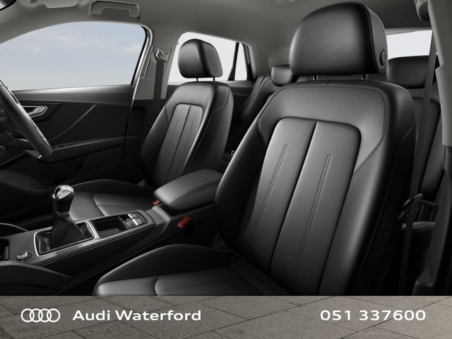 Audi Q2 30 TFsi SE PCP from €430 per month • Audi Music Interface • Bluetooth Interface • MMI Radio Plus • Touchscreen Stereo • Audi Drive Select • Audi Stop/Start • Auto Handbrake • Cruise Control • 17"Alloys • Metallic Paint • Space Saver Spare Wheel • Air Conditioning • Ambient Lighting • Armrest • Climate Control • Electric Mirrors • Electric Windows • Front/Rear Floor Mats • Multi-Function Steering Wheel • Onboard Computer • Split Fold Rear Seats • Heated Seats • Leather Interior • ABS • Active Lane Assist • Alarm • Auto Lights and Wipers • Child Locks • Daytime Running Lights • Hill Hold Assist • ISO Fix • LED Headlights • Light and Rain Sensor • Multiple Airbags • Rear Park Assist • Reverse Camera • Reversing Sensors • Voice control • Audi Lane Assist • Audi Virtual Cockpit • Pre sense city • USB charging ports