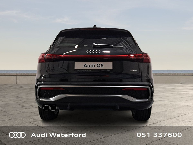 Audi Q5 40 TDI Quattro S-Line Exterior from €915 per month • ABS • Dual Climate control • Electric Mirrors • Electric Windows • Front/Rear Floor Mats • Interior Lighting Pack • Onboard Computer • Privacy Glass • Split Fold Rear Seats • 3 Spoke Sports Steering Wheel • Heated Seats • Leather Interior • Leather Steering Wheel • Lumbar Support • Climate Control • Active Lane Assist • Alarm • Auto Lights and Wipers • Child Locks • Daytime Running Lights • Hill Hold Assist • Immobilizer • ISO Fix • LED Headlights • Light and Rain Sensor • Multiple Airbags • Rear Park Assist • Reverse Camera • Warning Triangle • Advanced Key • Front and Rear Park Sensors • Voice control • Audi Connect • Audi Lane Assist • Audi Smartphone Interface • Audi Virtual Cockpit • Pre sense city • USB charging ports • Ambient Lighting • Bluetooth Interface • MMI Radio Plus • Touchscreen Stereo • Audi Drive Select • Audi Stop/Start • Auto Handbrake • Cruise Control • Quattro Four Wheel Drive • 19"Alloys • Metallic Paint • S-Line Body Styling • S-Line Exterior Pack • Air Conditioning • Audi Music Interface • Armrest • Button Start-Stop