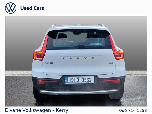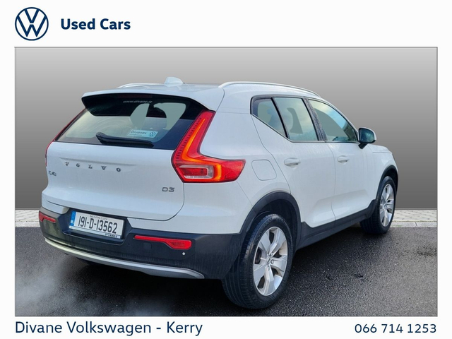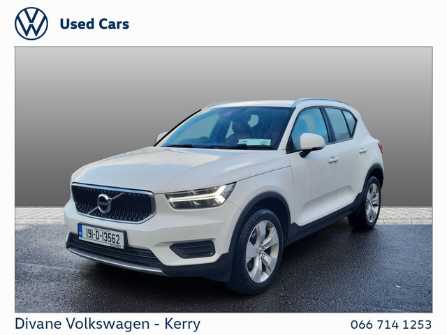 VOLVO XC40 D3 MOMENTUM 2.0L DIESEL IN WHITE €280 ROAD TAX. • Alarm system • Bluetooth • Daytime running lights • Passenger-side airbag • Electrically adjustable seats • Emergency brake assist • Central locking • Remote central locking • USB connection (front) • Electric windows • Traction control • Tyre pressure monitor • ABS • Lane change assist • Air conditioning • Dual zone climate control • Radio • Driver-side airbag • Lumbar support • Armrest • Hill hold assist • Touch screen display • Climate control • Anti collision system • Keyless entry • USB connection (rear) • Cruise control • Electric side mirrors • Auto lights (dusk sensor) • LED headlights • Lane departure warning • Side airbag • Spoiler • Voice control • 12v power outlet • Immobilizer • Electric handbrake • Heated seats • Isofix • Navigation system • Rear parking sensors • Speed limiter • Start-stop system • Wifi • Remote boot release • Roof rails • Stability control • Traffic sign recognition • Alloy wheels • Rain sensor • Digital instrument panel • Multi-function steering wheel • Leather steering wheel • Seat belt warning • Emergency tyre repair kit • Finance Available
