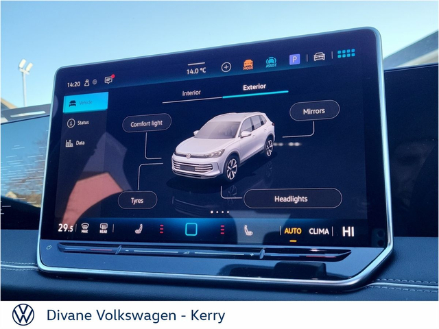 NEW TIGUAN STYLE 2.0TDI DSG 150 BHP IN CIPRESSINO GREEN METALLIC €270 ROAD TAX. €63,000 • Rear View Camera • Electric Mirrors • Electric Windows • Metallic Paint • Privacy Glass • Full Service History • Adaptive cruise control • App Connect • Car 2X Technology • Front Assist • Keyless Locking & Starting • Lane Assist • Parking sensors • Chrome Package • We Connect • Electric folding mirrors • Electric Tail Gate • Reversing Camera • Active info display Clocks • Anti-Theft alarm • Heated Steering Wheel • Heated Windscreen • Wireless Phone Charging • PANORAMIC SUNROOF • VW Bank Finance Available • IQ. LIGHT • Stop and Start System • Child Locks • Daytime Running Lights • Flat Tyre Indicator • ISO Fix • Multiple Airbags • Immobilizer • Auto Handbrake • Auto Lights and Wipers • Hill Hold • Remote Central Locking • Satellite Navigation • Servotronic Steering • ABS • Total Closure System • Adjustable Steering Column • Armrest • Bluetooth Phone • Heated Seats • Leather Multi-functional Steering Wheel • Lumbar Support • Onboard Computer • Split Fold Rear Seats • Touchscreen Stereo • USB • Alloy Wheels