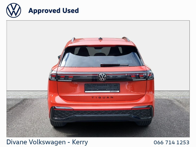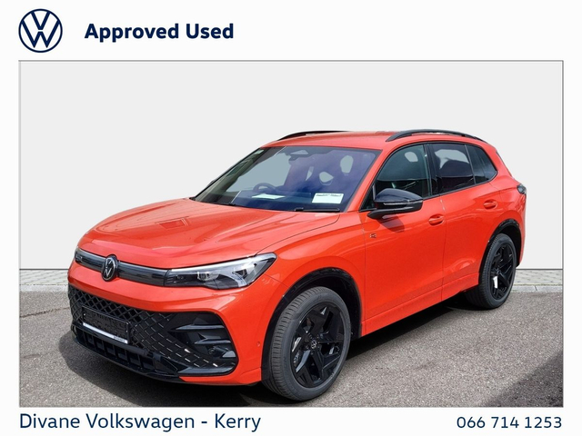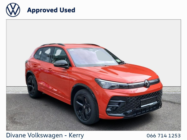 NEW VW TIGUAN R-LINE 75 2.0TDI DSG 150BHP IN PERSIMMON RED METALLIC VOLKSWAGEN RETAIL PRICE: €65,500 €270 ROAD TAX. CALL FOR MORE INFO! • App Connect • Split Fold Rear Seats • Touchscreen Stereo • USB • Alloy Wheels • Electric Mirrors • Electric Windows • Metallic Paint • Privacy Glass • Full Service History • R-Line • Adaptive cruise control • Onboard Computer • Front Assist • Lane Assist • Parking sensors • Rear View Camera • We Connect • Active info display Clocks • Anti-Theft alarm • Wireless Phone Charging • PANORAMIC SUNROOF • VW Bank Finance Available • IQ. LIGHT • Satellite Navigation • Side Airbag • Child Locks • Daytime Running Lights • Flat Tyre Indicator • ISO Fix • Multiple Airbags • Immobilizer • Auto Handbrake • Auto Lights and Wipers • Hill Hold • Remote Central Locking • ABS • Servotronic Steering • Stop and Start System • Total Closure System • Adjustable Steering Column • Air Conditioning • Armrest • Bluetooth Phone • Dual Climate-Control • Heated Seats • Leather Multi-functional Steering Wheel • Lumbar Support