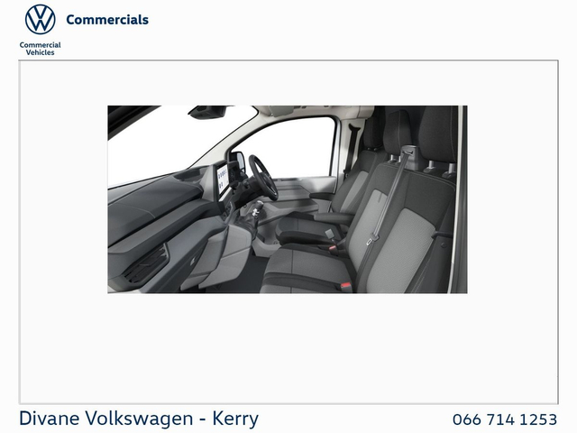 251 VW TRANSPORTER VAN TRENDLINE 2.0 TDI 150 BHP LONG WHEEL BASE MIDNIGHT BLACK METALLIC TOWBAR 5 YEAR WARRANTY 5 YEARS SERVICING 5 YEARS ROADSIDE ASSISTANCE STANDARD SPEC INCLUDES • Driver Assistance Package Plus • Rear view camera system • Park distance control front & rear • Front assist w/ pedestrian & cyclist monitoring, swerve support, and oncoming vehicle braking when turning • Steel spare wheel • Leatherette-wrapped multi-function steering wheel • Central locking, Keyless start with SAFELOCK • Seat belt pretensioner • Side & curtain airbags in caB • Exterior mirros, power adjust, heated, power fold • Anti-theft alarm • Air con system (manual control) RETAIL PRICE: €44,600 UP TO €5,000 SCRAPPAGE DIVANE SSCRAPPAGE PRICE :€39,600 €32,200 PLUS VAT CALL TO SEE IF YOUR VEHICLE QUALIFIES €31,950 PLUS VAT • ABS • Daytime Running Lights • Flat Tyre Indicator • Multiple Airbags • Immobilizer • Auto Lights and Wipers • Cruise Control • Remote Central Locking • Satellite Navigation • Stop and Start System • Adjustable Steering Column • Air Conditioning • Armrest • Bluetooth Phone • Lumbar Support • Multi-Function Steering Wheel • Onboard Computer • Split Fold Rear Seats • Touchscreen Stereo • USB • Electric Mirrors • Electric Windows • Full Service History • App Connect • Front Assist • Parking sensors • We Connect • Hub Caps • Solid Bulkhead • Full Vat Receipt Available • VW Bank Finance Available
