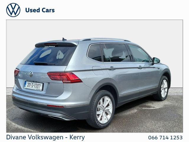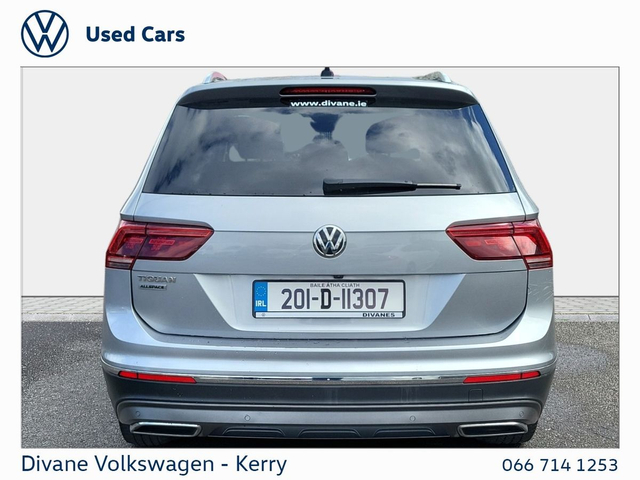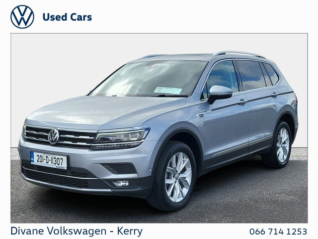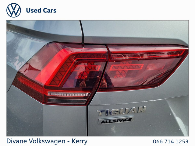 TIGUAN ALLSPACE 7 SEATER HIGHLINE 2.0TDI M6F 150BHP SILVER METALLIC NEW NCT €270 ROAD TAX. • ABS • Driver Airbag • Passenger Airbag • Child Locks • Daytime Running Lights • Deadlocks • ESP • Flat Tyre Indicator • ISO Fix • Multiple Airbags • Immobilizer • Auto Handbrake • Auto Lights and Wipers • Cruise Control • Hill Hold • Parking Assistance • Power Steering • Remote Central Locking • Satellite Navigation • Stop and Start System • Total Closure System • Adjustable Steering Column • Auxiliary Socket • Air Conditioning • Armrest • Bluetooth Phone • Heated Seats • Leather Interior • Leather Multi-functional Steering Wheel • Lumbar Support • Onboard Computer • Split Fold Rear Seats • Touchscreen Stereo • USB • Alloy Wheels • Chrome Package • Electric Mirrors • Electric Windows • Front Fog Lights • Metallic Paint • Privacy Glass • Spoiler • Full Service History • Adaptive cruise control • App Connect • Front Assist • Lane Assist • Parking sensors • Rear View Camera • Active info display Clocks • Anti-Theft alarm • Technology Pack • PANORAMIC SUNROOF • VW Bank Finance Available • LED Headlamps