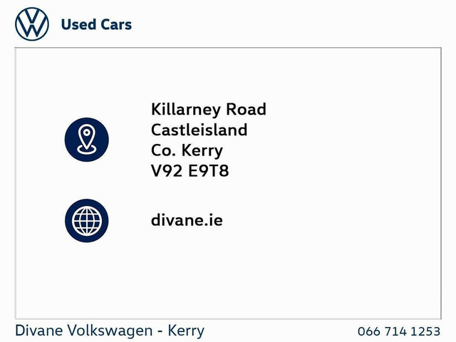 | Contact info: | Divanes Volkswagen Killarney Road Castleisland County Kerry Ph: 066-7141253 |