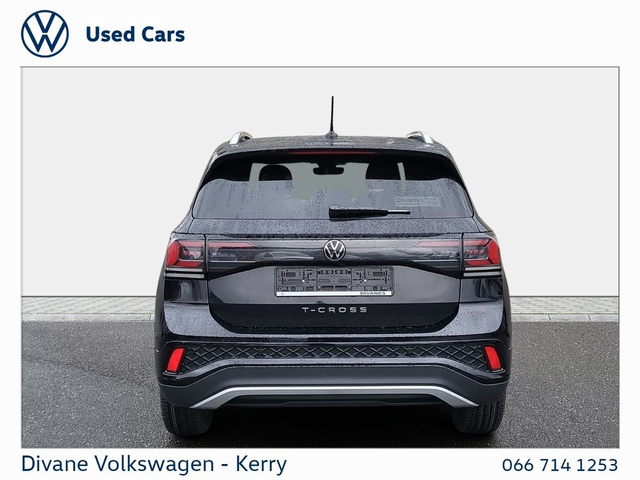VOLKSWAGEN T-CROSS R LINE 1.0 PETROL 110BHP ASCOT GREY R LINE INTERIOR WINTER PACK SPARE WHEEL VOLKSWAGEN RETAIL PRICE: €37,500 UP TO €2,000 SCRAPPAGE DIVANES SRAPPAGE PRICE €35,500 CALL TO SEE IF YOUR SCRAPPAGE VEHICLE QUALIFIES • ABS • Driver Airbag • Passenger Airbag • Child Locks • Daytime Running Lights • ESP • Flat Tyre Indicator • ISO Fix • Multiple Airbags • Immobilizer • Auto Lights and Wipers • Cruise Control • Hill Hold • Power Steering • Remote Central Locking • Satellite Navigation • Stop and Start System • Total Closure System • Adjustable Steering Column • Auxiliary Socket • Air Conditioning • Armrest • Bluetooth Phone • Heated Seats • Leather Multi-functional Steering Wheel • Lumbar Support • Onboard Computer • Split Fold Rear Seats • Touchscreen Stereo • USB • Alloy Wheels • Chrome Package • Electric Mirrors • Electric Windows • Front Fog Lights • Metallic Paint • Privacy Glass • Spoiler • Full Service History • Adaptive cruise control • App Connect • Front Assist • Lane Assist • Parking sensors • Rear View Camera • We Connect • Active info display Clocks • Technology Pack • VW Bank Finance Available