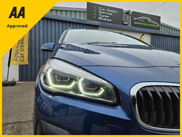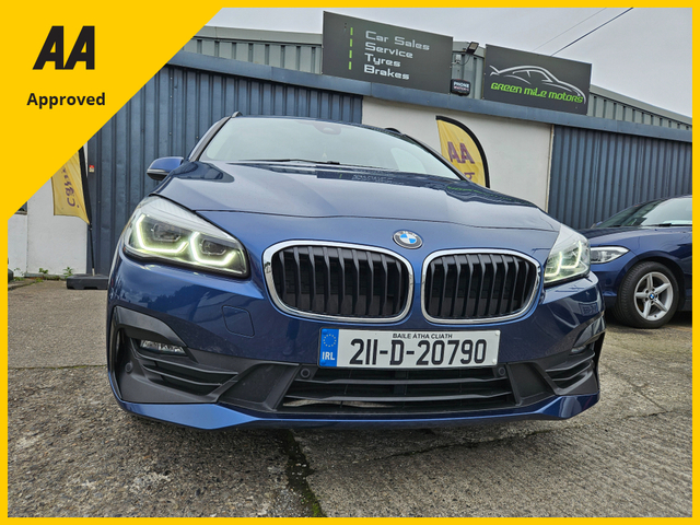 * 2021 BMW 216D GRAND SPORT TOURER 7 SEATER * 1.5 DIESEL WITH AUTOMATIC GEARBOX * COMES IN NICE METALLIC BLUE COLOUR * 16 INCH ALLOY WHEELS (4 GOOD TYRES) * BLACK LEATHER INTERIOR * PARKING SENSORS (FRONT AND REAR) * CRUISE CONTROL * SAT NAVIGATION * PRIVACY GLASS * DUAL CLIMATE CONTROL WITH A/C * MULTI-FUNCTION STEERING WHEEL * BLUETOOTH AND USB CONNECTIONS * IRISH CAR FROM NEW * ONLY ONE PREVIOUS OWNER * FULL SERVICE HISTORY * NEW NCT TEST TILL 03/27 * LOW TAX BRACKET € 210 PER ANNUM * 49369 MILES / 79452 KM * 2 ORIGINAL KEYS * CAR LOOKS AND DRIVES VERY WELL WITH PLENTY OF SPACE * ANY INSPECTION WELCOME * TO APPLY FOR FINANCE PLEASE VISIT OUR WEBSITE WWW.GREENMILEMOTORS.IE * We are proud to be an AA approved and 5 star rated dealer. * All our cars have been through a 101-point AA approved inspection and comes with 12 months free AA membership, roadside assistance and breakdown. * This car has been checked by motor check.ie (full history report from new included HPI clear) to ensure peace of mind for the customer and to in still confidence when purchasing a pre-owned vehicle * All our cars come serviced, health checked and valeted * 3 months warranty included (12 months warranty available) * Trade-ins welcome * For more information or arrange viewings please call 0857444451 * Due to a high turnover in stock, we recommend that you contact our sales team to make sure the car is still available and to make an appointment