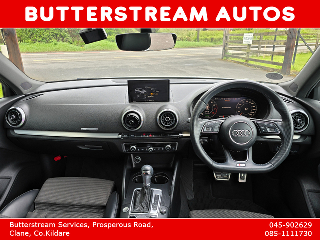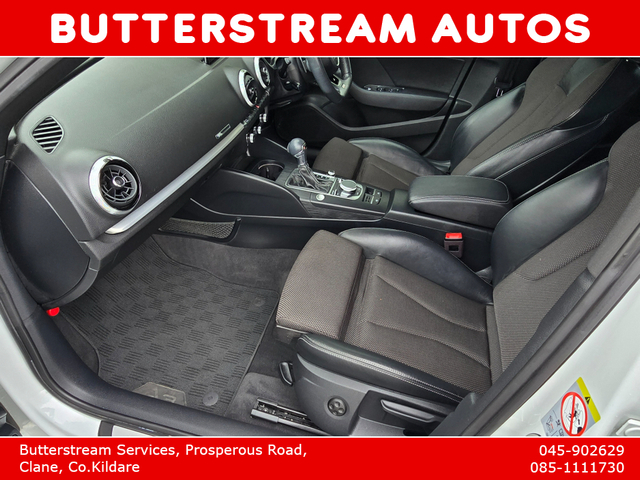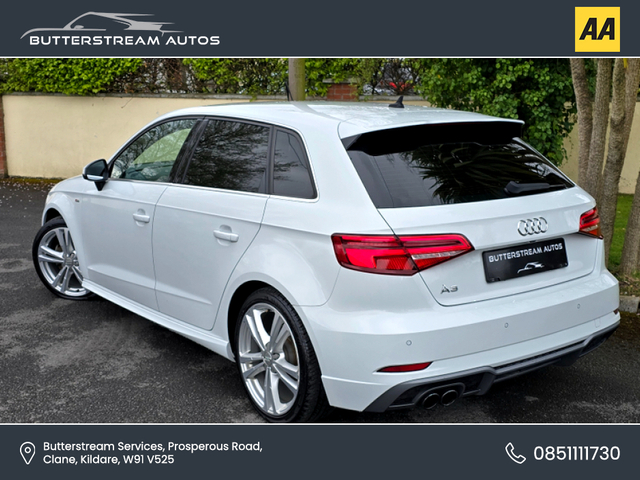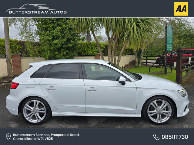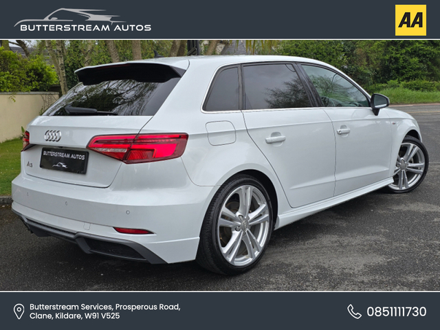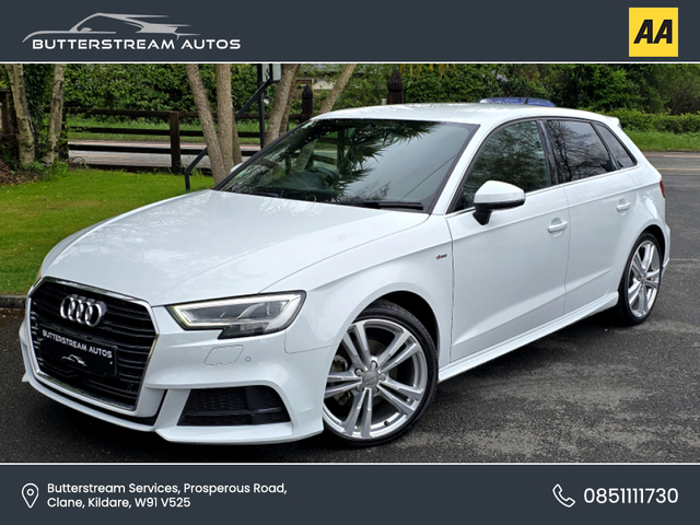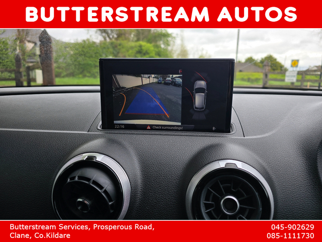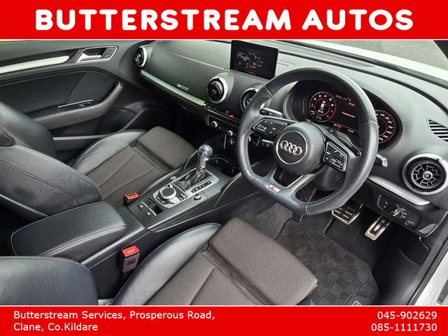 Welcome to Butterstream Autos. We are delighted to be able to offer this Audi A3 1.4 Tsi Dsg Sline to our inventory today. With over 10 years experience in the car retailing business we hope to make your car buying experience as comfortable and hassle free as possible. If interested in this vehicle please contact our sales team to viewing. We look forward to assisting you in any way possible and we hope to go above and beyond your expectations and to deliver value for money to all our growing customer base. Call sale today on 0851111730.Thank you and hopefully see you soon. 3 Month Warranty, Trade in accepted, Air Conditioning, Central Locking, CD Player, Immaculate condition, Electric Windows, Airbag, Alarm, Alloy Wheels, Cruise Control, Electric Mirrors, Electric Seats, Fog Lamps, Immobiliser, Rear Spoiler, Half Leather, Privacy Glass, Sports Seats, Interior Wood Finish, Automatic Wipers, Automatic Lights, Centre Armrest, Luggage Cover, Multi-function steering wheel, Climate Control, Satellite Navigation, Traction Control, Multiple Air Bags, Xenon Lights, Sports Suspension, Anti-Theft System, Parking Sensors, Bluetooth, Remote Central Locking, EBD, Electronic handbrake, Folding rear seats, Sun blinds, Isofix, Hill holder, Roadside assistance, History Checked, Finance Checked, Apple Car Play, Android Auto, Keyless Entry, Heated Front Seats, Reversing Camera, Front Parking Sensors, Lane Departure Warning, Blind Spot Monitoring System, Wireless Smartphone Control, Electro Chrome Rear View Mirror, Speed Sign Recognition & Recommendation, Active Safety Braking / City Brake / Collision Alert, Adaptive Cruise Control, Stop/Start Button, Touch Screen Media Control, Driver Fatigue Warning, Drive Mode Selector, Dual Zone Climate Control, Daytime Running Lights, 2 Keys, Main Dealer Service History, External Devices Connectivity, Cup holders, Stability control