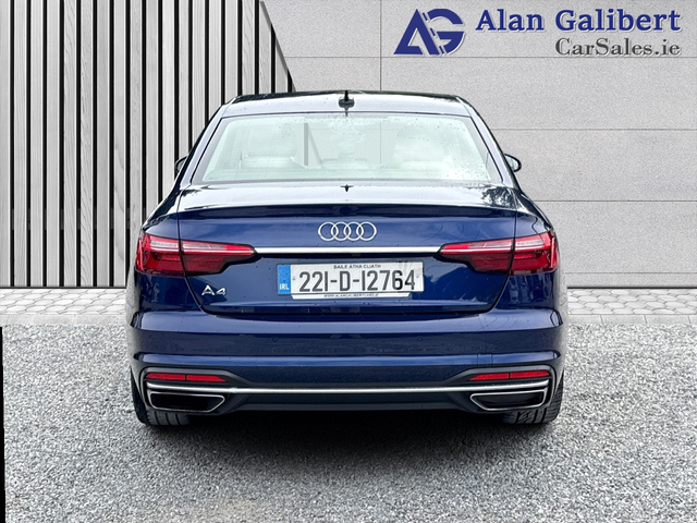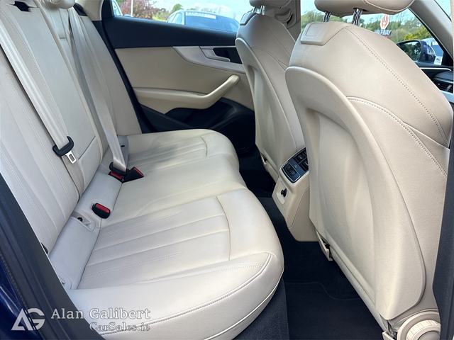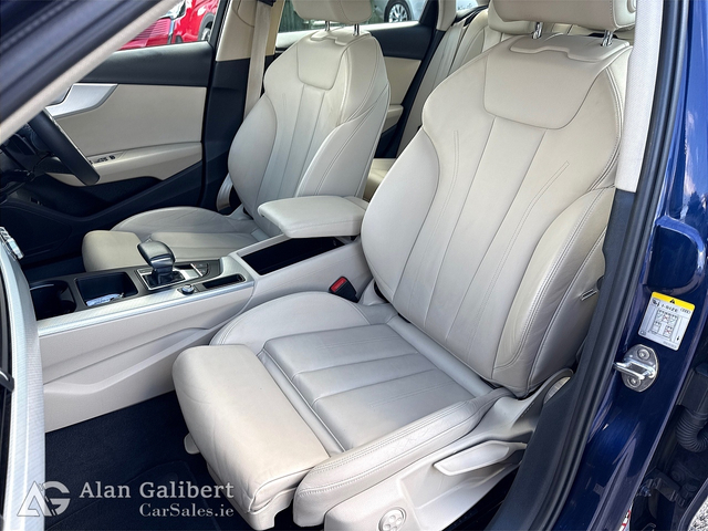 Welcome to Alan Galibert Car Sales,Just into stock 221 Audi A4 2.0 TDI SE, S-Tronic New Shape Auto,Immaculate condition. Just Serviced & Fully Valeted 2.0 TDI Diesel S-TRONIC SE Full Leather Interior& Heated Seats This is a brilliant car, absolutely immaculate inside & out. This car comes fully serviced Valeted and with Aftersales Warranty. Great Value & trade in welcome. Price Includes a SCRAPPAGE ALLOWANCE of €2,000 for an older car. ALSO GREAT FINANCE DEALS AVAILABLE.. Buy this car from €143 per week, Click the Finance link on our website & Apply online today. www.alangalibertcars.ie T&Cs Apply. Electric Windows, ISOfix Seats, ABS Brakes, Metallic Paint, LED Daytime running lights , AUX Input, WARRANTY AVAILABLE, BODYCODED BUMPERS, ADJUSTABLE SEATS, ADJUSTABLE STEERING WHEEL, AUTO LIGHTS. Central Locking, Electric Windows, Airbag, Centre Armrest, Multi-function steering wheel, Traction Control, Metallic Paint, Parking Sensors, Bluetooth, EBD, Isofix, Active Safety Braking / City Brake / Collision Alert, Stop/Start Button, External Devices Connectivity, Cup holders, Remote boot/hatch/rear door release, Stability control