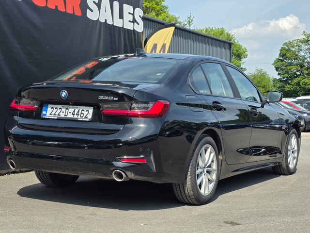2022 BMW 330E SE PRO HYBRID AUTOMATIC MODEL IN PRISTINE CONDITION COMES WITH: - ALLOY WHEELS - FULL LEATHER INTERIOR - HEATED SEATS - SAT NAV - CRUISE CONTROL - BLUETOOTH - TOUCH SCREEN MONITOR - ELECTRIC FOLDING MIRRORS Note that this car will come fully valeted and with a 3 month warranty as standard or an option to extend. All our cars come with a detailed history report and fully serviced or health checked by our in-house mechanic and a valid NCT. Trade ins are most welcome and can be used as deposit also Delivery can be arranged throughout the country. Finance packages tailored to suit each individual. Air conditioning, Climate control, Dual zone climate control, Multi zone climate control, Armrest, Keyless entry, Electric side mirrors, Electric windows, Electric handbrake, Multi-function steering wheel, Rain sensor, Split rear seats, Gear shift paddles, Apple CarPlay, Bluetooth, MP3 compatible, 12v power outlet, Radio, Touch screen display, USB connection (front), Cruise control, Hill hold assist, Navigation system, Self-steering parking, Parking camera, Front parking sensors, Rear parking sensors, Remote boot release, Speed limiter, Start-stop system, Traffic sign recognition, Voice control, Parking assistance, Digital instrument panel, Alloy wheels, Leather steering wheel, Adaptive headlights, Ambient lighting, Auto lights (dusk sensor), Daytime running lights, LED headlights, ABS, Anti collision system, Alarm system, Emergency brake assist, Central locking, Remote central locking, Driver-side airbag, Immobilizer, Isofix, Lane departure warning, Tyre pressure monitor, Passenger-side airbag, Seat belt warning, Side airbag, Stability control, Traction control, Emergency tyre repair kit