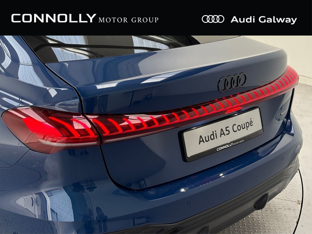 Finished in stunning Ascari Blue with a sleek Black Exterior Package, this Audi A5 S line e-hybrid quattro perfectly blends sporty styling with everyday efficiency. Inside, you’re welcomed by light grey leather sport seats with S branding and 4-way lumbar support, complemented by matt brushed aluminium inlays with anthracite finish for a refined, modern feel. Equipped with the Tech Pack and MMI Experience Plus, the car offers a seamless digital driving experience, enhanced by the Ambient Lighting Package Plus, creating a premium atmosphere throughout the cabin, along with a high-quality Audi sound system. Sitting on striking 19” 5-arm aero alloy wheels in a black gloss turned finish, this A5 delivers strong performance from its 220kW plug-in hybrid system, combined with the confidence of quattro all-wheel drive — making it an ideal choice for Irish roads with style, comfort, and efficiency in mind. A premium plug-in hybrid that delivers on style, comfort, and performance — this Audi A5 is ready to impress from the very first drive.