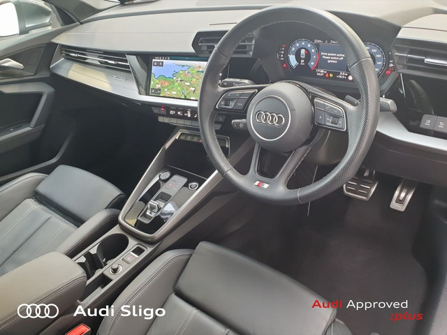 Audi A3 Saloon S Line 1.5 Petrol Auto 150HP - Sat Nav - PCP from €410pm - • Mobile Phone Preparation-Bluetooth • Satelitte Navigation • Touchscreen Stereo • Audi Drive Select • Audi Stop/Start • Auto Handbrake • Cruise Control • 18"Alloys • Armrest • Automatic Air Conditioning • Button Start-Stop • Colour Driver Information system • Auto Lights and Wipers • Audi Pre Sense • Audi Connect • Audi Lane Assist • Audi Smartphone Interface • Audi Virtual Cockpit • LED Headlights with dynamic rear indicators • USB charging ports