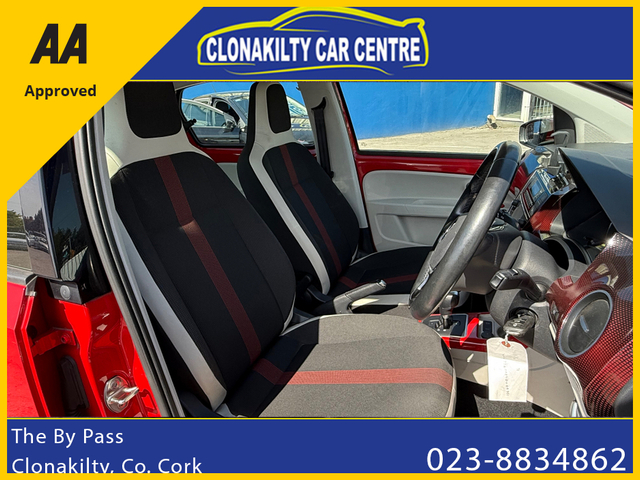 VW Up!. 990cc Petrol. Automatic. Immaculate condition. Sporty little car. Very economical. First to View will buy it. Delivery available, (Call for details) Cash,Card Payment or Bank Transfer Finance Available, (Fill in online form on website) Trade ins Welcome, Warranty, Full service, Air con service (when air con fitted) Full valet, Sanity system clean. Enquiries 0238834862 Press 1 for Sales 2 for Serviced 3 for Valeting 4 for Accounts Stephen 0877401942 (Call or text, if unavailable text and I will return call ASAP) Snap chat Stevecloncarcentre Website www.clonakiltycarcentre.com Address Showroom and workshop. Clonakilty car centre, The Bypass, Clonakilty, Co,Cork. P85 ET99. Ford Toyota Honda Nissan Audi Volkswagen Seat Fiat Bmw Mercedes Peugeot Citroen Fiesta focus Yaris Corolla micra up Perfect working order, 3 Month Warranty, Trade in accepted, Air Conditioning, Immaculate condition, Airbag, Electric Mirrors, Immobiliser, Parking Sensors, Bluetooth, Brand New Tyres, Folding rear seats, Roadside assistance, History Checked, Finance Checked, Cup holders