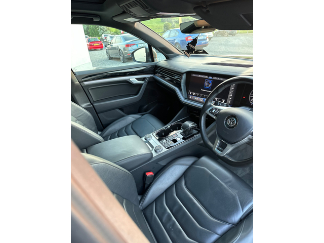 2018 182 Volkswagen Touareg 3.0 TDI V6 R-Line SUV 5dr Diesel Tiptronic 4Motion Euro 6 (s/s) 286 PAN ROOF/ AIR SUSPENSION/ DIGITAL DASH ?? Great Finance packages available ?? Only 60k Miles Pan Roof Air suspension Digital Dash Heated Steering Wheel Full Black Leather 286 BHP Automatic Cruise Control Climate Control Sat Nav Electric Windows DAB Digital Radio Engine Immobiliser ISOfix Anchor Points Keyless Start Parking Sensors Electric Tow Bar Absolutely Loaded with Spec CAR IS PRICED TO SELL AT €54995 SERIOUS VALUE FOR SPEC & MILES ?0894239084 NATIONWIDE WARRANTY IS EXTENDABLE TO 6 MONTHS 12 MONTHS OR 24 MONTHS FREE BREAKDOWN ASSISTANCE WITH MOST WARRANTIES RING ANYTIME TO ARRANGE A VIEWING IF NO ANSWER PLEASE WHATSAPP OR TEXT AND I WILL CALL YOU BACK VIEWING STRICTLY BY APPOINTMENT ONLY ANYTIME CHECK OUT R1 AUTOS ON SOCIALS CARD PAYMENT TO SECURE DEPOSIT TRADE INS CONSIDERED FULL CLEAN HISTORY CHECK INDOOR VIEWING AVAILABLE WARRANTY AVAILABLE DELIVERY AVAILABLE WALK AROUND VIDEOS AVAILABLE Air conditioning, Climate control, Dual zone climate control, Armrest, Keyless entry, Electric side mirrors, Electric windows, Electric handbrake, Heated seats, Multi-function steering wheel, Rain sensor, Spare tyre, Gear shift paddles, Android Auto, Apple CarPlay, Bluetooth, 12v power outlet, Radio, Touch screen display, USB connection (front), Wifi, Adaptive cruise control, Cruise control, Hill hold assist, Navigation system, Parking camera, Front parking sensors, Rear parking sensors, Remote boot release, Roof rails, Speed limiter, Start-stop system, Traffic sign recognition, Voice control, Parking assistance, Alloy wheels, Leather steering wheel, Ambient lighting, Auto lights (dusk sensor), Daytime running lights, LED headlights, ABS, Lane change assist, Anti collision system, Alarm system, Emergency brake assist, Central locking, Driver-side airbag, Immobilizer, Isofix, Lane departure warning, Tyre pressure monitor, Passenger-side airbag, Seat belt warning, Side airbag, Stability control, Traction control, 4WD