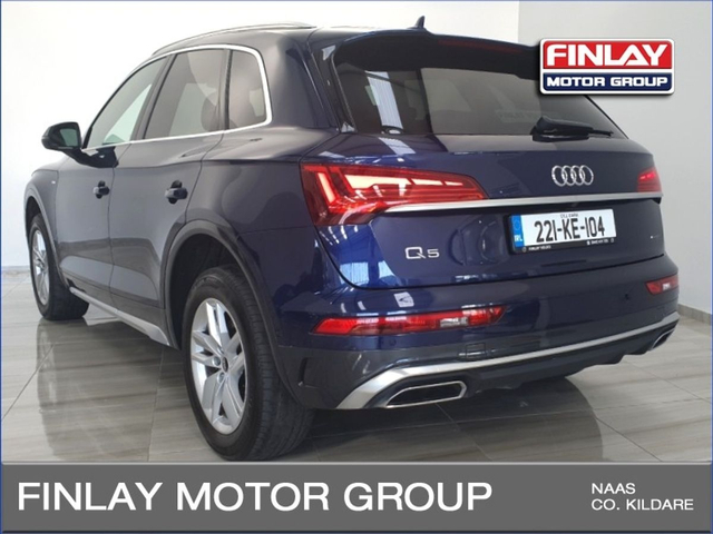 2022 Audi Q5 40 TDI 204 HP S Tronic Quattro S Line Welcome to Finlay Motor Group, home to Finlay Ford, Ford Commercial, Finlay Volvo, and the largest Used Car centre in Kildare. View our extensive range of new and used cars in our digital showroom today. You can buy or reserve a vehicle and apply for finance on our full e-commerce website www.finlaymotorgroup.ie. 2022 AUDI Q5 40 TDI 204HP S Tronic Quattro S Line Features & Specs: • Ten speakers including subwoofer • Audio player with digital media card reader and touch screen ; radio receives AM/FM, digital and RDS • Steering wheel mounted remote audio controls • 12v power outlet located in front section and rear section • Remote controlled remote boot/hatch/rear door release • Electric boot/hatch pull down • Memorised adjustment controlling door mirror position • Cruise control • Illuminated entry system • Driver and passenger vanity mirror • Automatic door pull shut on boot/hatch • Analogue & TFT dashboard • Seat belt warning on five seats • Computer includes average fuel consumption • Alloy trim on dashboard, alloy trim on doors, alloy trim on centre console and leather gearknob • Floor mats • Seat upholstery leather • Centre armrest between front seats • Centre armrest between rear seats • Driver and passenger seat: sports type, heated, electrically adjustable, two electrical adjustments • 40/20/40 split folding rear seats: bench type with space for three people; with zero electric adjustments • Leather covered multi-function steering wheel with tilt adjustment and telescopic adjustment • Power steering: electric speed proportional • Refrigerated storage compartment in glove compartment • Cup holders for front seats • Transmission: 7-speed dual clutch sequential featuring control mounted on the floor • Ventilation system with digital display, air filter and active carbon filter • Secondary ventilation controls with digital display for front passenger and rear passengers • Automatic air conditioning with three climate control zones • Body colour power door mirrors/cameras ; heated and light sensitive with integrated indicator lights tilt feature when reversing • Front and rear electric windows with one-touch on two windows • Features on demand preparation • Low tyre pressure indicator • Smart card/key includes keyless start • Voice activating system • Four disc brakes including two ventilated discs • ABS • Front sensor-type parking distance system, rear sensor & camera-type parking distance system • Electronic traction control • Front and rear side curtain airbags • Central door locking: Operated by remote Includes windows • Intelligent drivers airbag, intelligent passengers airbag with de-activation switch • Front side airbag • Two head restraints on front seats with height adjustment, three head restraints on rear seats with height adjustment • Height adjustable seat belt with pre-tensioners on drivers seat and front passenger seat • Seat belt on driver side rear seat, seat belt on passenger side rear seat, 3-point seat belt on central rear seat • Stability control system • Brake assist system • Isofix preparation • Electronic hand brake Finance available. Speak to our sales team today on 045-431725. Finlay Motor Group will send you a personalised video straight to your phone detailing the new or used car you are interested in. At Finlay Motor Group, we have competitive and flexible finance packages available for all vehicles. Commercial & fleet options including bespoke Leasing options are also available, just speak to our Commercial team on 045-431725 for more details and quotes. Finlay Motor Group is based in Naas, just off the M7, we offer nationwide delivery on all Ford, Volvo & used vehicles. Phone: 045-431725 Email: [email protected] Address: Finlay Motor Group, M7 Motor Park, Naas, Co. Kildare, W91 XR20