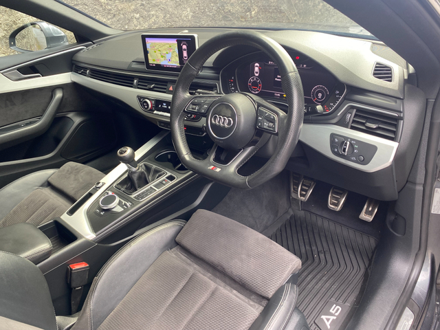 Jan 2018 Audi A5 S-Line Ultra 190 Price includes VRT, NOX charge, Duties paid, South number plates fitted and 2 years NCT!! Two keys 12 months AA roadside assist/recovery motorcheck.ie printout Comes fully serviced along with a new water pump and timing belt and a 3 Month Warranty Nationwide delivery €149. Apply for finance on our website - jhavlinmotors.com Contact Colum on 074 93 85101. Whatsapp 087 767 4 767 Spec includes 3 Month Warranty, Central Locking, Electric Windows, Airbag, Alarm, Alloy Wheels, Cruise Control, Electric Mirrors, Electric Seats, Fog Lamps, Immobiliser, Half Leather, Privacy Glass, Automatic Wipers, Automatic Lights, Centre Armrest, Multi-function steering wheel, Satellite Navigation, Traction Control, Metallic Paint, Multiple Air Bags, Side Impact Protection, Anti-Theft System, Parking Sensors, Bluetooth, Brand New Tyres, New Timing Belt, EBD, Electronic handbrake, Six speed transmission, Isofix, Finance Checked, Apple Car Play, Android Auto, Motorised Tailgate, Space Saver Spare Wheel, Active Safety Braking / City Brake / Collision Alert, Stop/Start Button, Touch Screen Media Control, Drive Mode Selector, Dual Zone Climate Control, Daytime Running Lights, 2 Keys, External Devices Connectivity, Cup holders, Remote boot/hatch/rear door release, Stability control