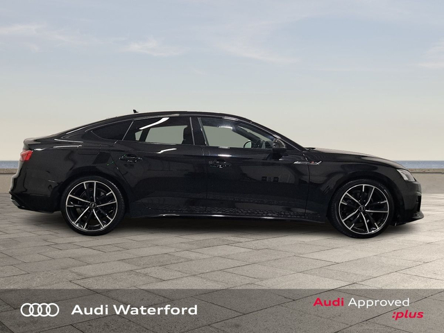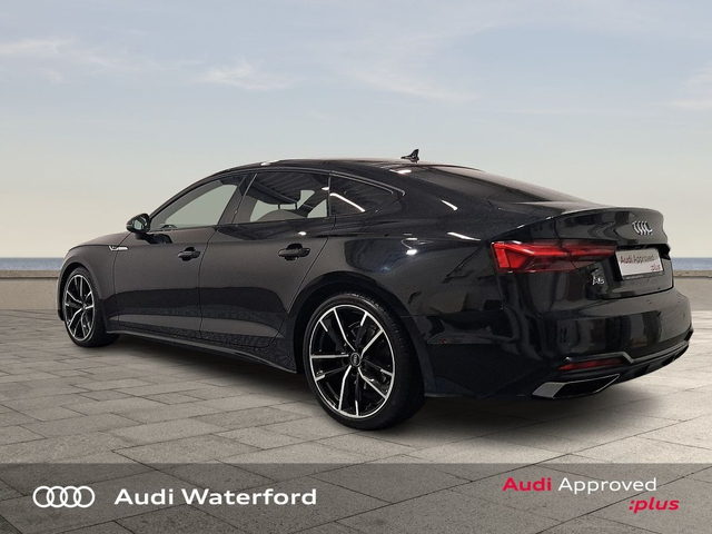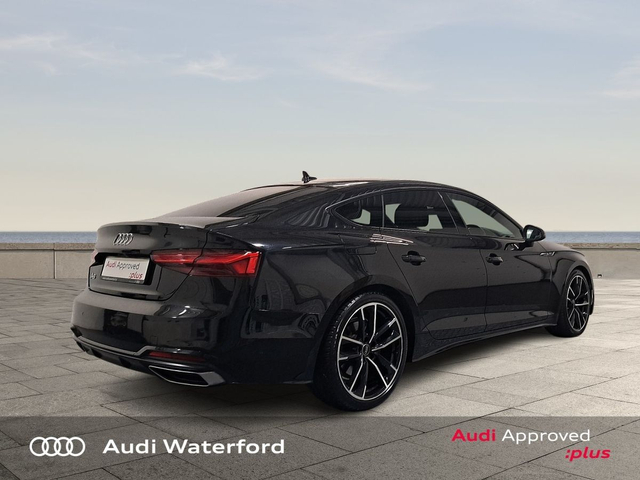 Audi A5 Sportback S-Line" TDI from €536 per month • Hill Hold Assist • Front and Rear Park Assist • Front Sports Seats including Electric Lumbar Support • Headlining in Black Cloth • Heated Seats • Leather Interior • Lumbar Support • Active Lane Assist • Auto Lights and Wipers • Child Locks • Electronic Stability Programme (ESP) • Rake/Reach Adjustable Steering Column • 3 Spoke Leather Multifunction S-Line Steering Wheel • Immobilizer • ISO Fix • LED Headlights • Multiple Airbags • Reverse Camera • Full Service History • USB • Audi Smartphone Interface • S-Line Body Styling • S-Line Exterior Pack • Mobile Device Interface (Media-In) • Touchscreen Stereo • Audi Drive Select • Audi Stop/Start • Cruise Control • 19"Alloys • Black Styling Pack • Metallic Paint • Bluetooth Interface • LED Headlights with dynamic rear indicators • Ambient Lighting • Button Start-Stop • Dual Climate control • Electric Mirrors • Electric Windows • Front/Rear Floor Mats • Multi-Function Steering Wheel • Privacy Glass