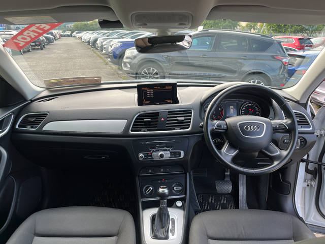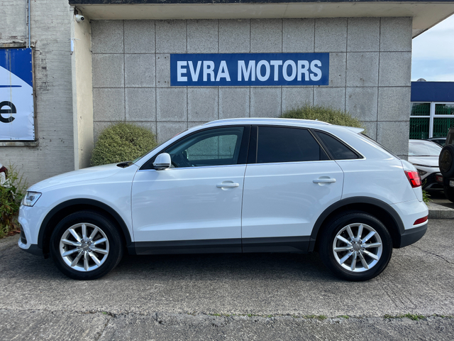 STOCK NUMBER 16675 JUST ARRIVED!! This AUDI Q3 AUTOMATIC 1.4 PETROL... In stunning condition inside and out.. A fantastic car to drive.. It comes with a huge spec including.. Call Andrew on 0877847012 or EMAIL [email protected] - Reverse Camera - Parking Sensors - Cruise Control - Bluetooth - Multi Functional Steering Wheel - Electric Windows - Air Con ***NEW NCT INCLUDED*** Here at Evra Motors we have a friendly knowledgeable sales team with over 20 years experience in the business. We are proud to be an AA Approved dealer with peace of mind as standard. We aim to stock a wide range of over 300 carefully selected premium AA Approved used cars all sourced directly from main dealerships here in Ireland. We aim to supply all our cars at the most competitive prices in the country. Extended warranty available on certain makes and models. Delivery can be arranged throughout the country. Each of our retail cars comes with a detailed history report and fully serviced or health checked by our in house service team of mechanics, a valid NCT will be provided and every car will be valeted prior to collection. Tailored finance packages available. We are open 6 days a week. For more information on our cars please contact ANDREW ON 0877847012 or email [email protected] Due to a high turnover in stock we recommend that you contact our sales team to make sure the car is still available and to make an appointment.