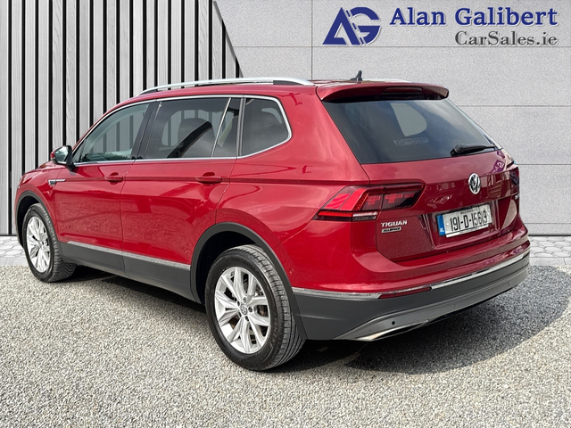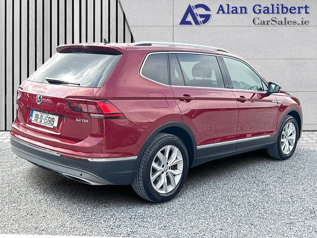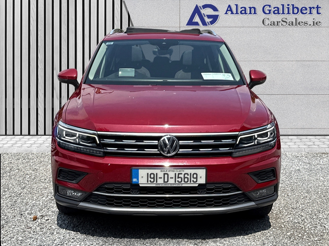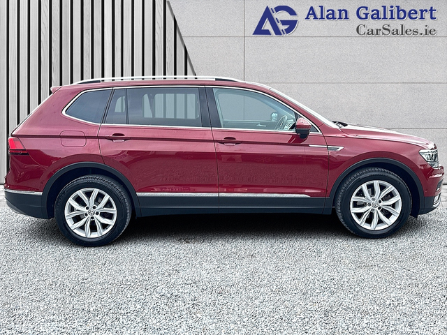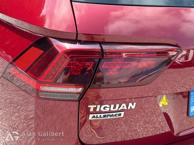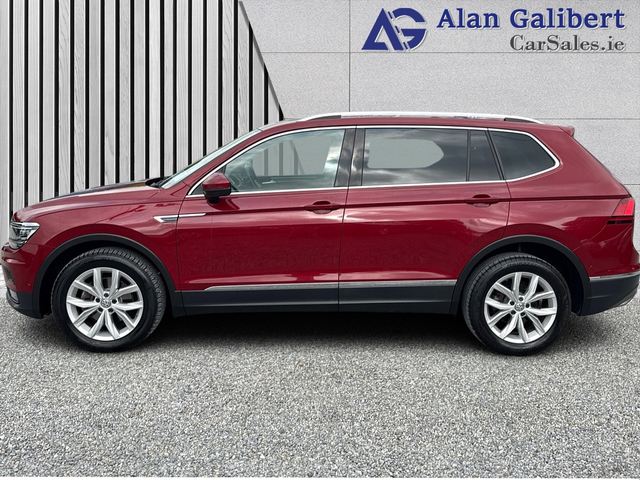 Welcome to Alan Galibert Car Sales,Just Into Stock 191 VW Tiguan 2.0TDI, Allspace Highline 7 Seater Model, Immaculate condition. Just Serviced & Fully Valeted Highline Model Top Spec & 7 Seater Digital Dash & Sat Nav This is a brilliant car, absolutely immaculate inside & out. This car comes fully serviced Valeted and with Aftersales Warranty. Great Value & trade in welcome. Price Includes a SCRAPPAGE ALLOWANCE of €2,000 for an older car. ALSO GREAT FINANCE DEALS AVAILABLE.. Buy this car from €143 per week, Click the Finance link on our website & Apply online today. www.alangalibertcars.ie T&Cs Apply. Electric Windows, ISOfix Seats, ABS Brakes, Metallic Paint, LED Daytime running lights , AUX Input, WARRANTY AVAILABLE, BODYCODED BUMPERS, ADJUSTABLE SEATS, ADJUSTABLE STEERING WHEEL, AUTO LIGHTS.Air Conditioning,Central Locking,Electric Windows,Airbag,Rear Spoiler,Centre Armrest,Multi-function steering wheel,Traction Control,Bluetooth,EBD,Isofix,Active Safety Braking / City Brake / Collision Alert,Stop/Start Button,External Devices Connectivity,Cup holders,Stability control.Air Conditioning,Central Locking,Electric Windows,Airbag,Rear Spoiler,Centre Armrest,Multi-function steering wheel,Traction Control,Bluetooth,EBD,Isofix,Active Safety Braking / City Brake / Collision Alert,Stop/Start Button,External Devices Connectivity,Cup holders,Stability control. Central Locking, Electric Windows, Airbag, Cruise Control, Fog Lamps, Privacy Glass, Centre Armrest, Multi-function steering wheel, Roof Rails, Satellite Navigation, Traction Control, Metallic Paint, Parking Sensors, Bluetooth, EBD, Isofix, Apple Car Play, Android Auto, Active Safety Braking / City Brake / Collision Alert, Stop/Start Button, External Devices Connectivity, Cup holders, Remote boot/hatch/rear door release, Stability control