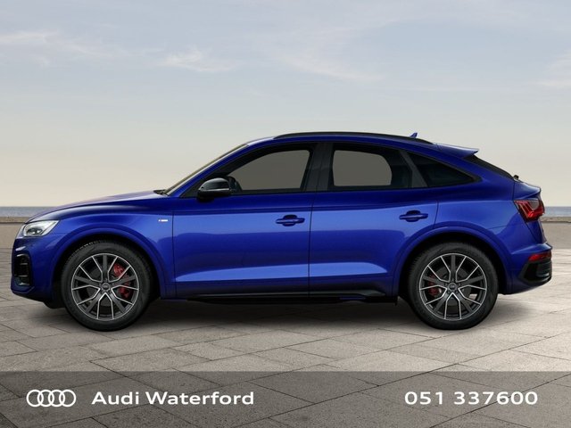 Audi Q5 Sportback 35 TDI Sline from €825 per month • LED Headlights • Heated Seats • Leather Steering Wheel • ABS • Active Lane Assist • Alarm • Auto Lights and Wipers • Child Locks • Daytime Running Lights • Front and Rear Park Assist • Hill Hold Assist • Immobilizer • ISO Fix • Headlining in Black Cloth • Light and Rain Sensor • Multiple Airbags • Reverse Camera • Warning Triangle • Advanced Key • Front and Rear Park Sensors • Voice control • Audi Connect • Audi Virtual Cockpit • Keyless Go • Pre sense city • USB charging ports • Ambient Lighting • Bluetooth Interface • MMI Radio Plus • Touchscreen Stereo • Audi Drive Select • Audi Stop/Start • Auto Handbrake • Cruise Control • 20"Alloys • Black Styling Pack • High Gloss Black Grille • Metallic Paint • Air Conditioning • Audi Music Interface • Armrest • Button Start-Stop • Drivers Information System • Electric Mirrors • Electric Windows • Front/Rear Floor Mats • LED Interior Light Pack • Onboard Computer • Privacy Glass • Split Fold Rear Seats • 3 Spoke Leather Multifunction S-Line Steering Wheel • Front Sports Seats including Electric Lumbar Support