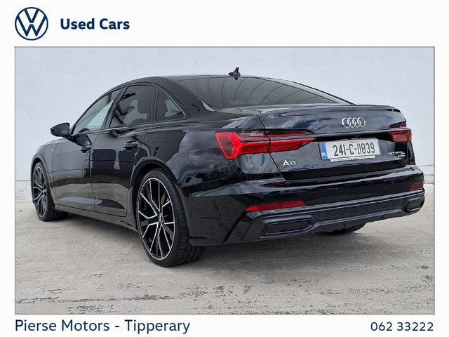 Audi A6 50 TFSI e Black Edition • Adjustable seats • Air Conditioning • Bluetooth Phone • Climate Control • Cruise Control • Digital Dash • Dual Air Conditioning • Dual Climate Control • Electric Mirrors • Electric Windows • Front Electric Windows • Heated Seats • Media Connection • Multi-Function Steering Wheel • Satellite Navigation • Touch Screen Radio • USB • Auto hold • Stop and Start System • 3x3point rear seat belts • ABS • Auto Handbrake • Auto Lights • Auto Lights and Wipers • Auto Wipers • Centralised locking • Child Locks • Hill Hold • Immobilizer • ISO Fix • Park Distance Control • Parking Assistance • Rear Parking Sensors • Rear View Camera • Remote Central Locking • Alloy Wheels • Leather Steering Wheel • Metallic Paint • Privacy Glass • Sport interior • Sports Seats • Sports seats • Tinted Windows • Winter Pack • Android Auto • Apple Car Play