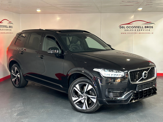 2020(201) Volvo XC90 R Design Model T8 AWD 7 seater, 2.0 petrol hybrid, 390BHP, Automatic Transmission, Fully loaded example, Full Black half leather half suede interior, Black metallic, Chromium dash trim, Surround 360 degree cameras, Panoramic opening sunroof, Reversing camera, Multimedia screen interface, Chrome pack, Memory & electric seats, Button start, Virtual dash display, Bi-Xenon lights, LED lighting front & rear DRLs, Fog lights, Lane assist, Park assist, Gesture control, Cruise & limit control, Automatic lights & wipers, Roof rails, Electronic opening tailgate, Tip Tronic function, Rear privacy glass, & much more, 2 keys, Full service history. Will come with new 2 year NCT test, Nationwide dealer warranty, Nationwide delivery available, Finance available over 3/4/5 years apply online www.oconnellbroscars.ie Contact Diarmuid / Liam on 0851049227 12 Month Warranty, Central Locking, Electric Windows, Airbag, Cruise Control, Rear Spoiler, Privacy Glass, Centre Armrest, Multi-function steering wheel, Roof Rails, Satellite Navigation, Traction Control, Anti-Theft System, Parking Sensors, Bluetooth, EBD, Isofix, Active Safety Braking / City Brake / Collision Alert, Stop/Start Button, Touch Screen Media Control, External Devices Connectivity, Cup holders, Remote boot/hatch/rear door release, Stability control