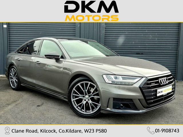 This is your opportunity to own a stunning Audi A8 S-Line Black Edition finished in Terra Grey with full ebony leather interior has just arrived into stock @DKM Motors. This car is in impeccable condition and has covered just over 111,000km. It has been maintained to the highest standard and needs to be seen to be appreciated. This A8 boasts 286BHP and some of the spec includes Panoramic sunroof, 20 inch diamond turned alloys, Audi Air Suspension, LED Matrix Headlights, Privacy glass, TFT digital instrument cluster, Electric seats Heated seats, Front and rear parking sensors, Sat Nav, Multi function steering wheel, Bluetooth with audio streaming. DKM Motors, located outside Kilcock, just 15 minutes from Junction 7 on the M50, are proud to be recognised as an AA approved dealership, meaning that all of our vehicles go through a rigorous AA Approved 101 point inspection and preparation process before delivery. Our vehicles come with a comprehensive warranty and 12 months AA membership as standard. Finance is available and trade ins are always welcome. We pride ourselves on delivering outstanding customer service. Our aftersales centre is equipped to handle a wide range of services, from routine maintenance to more advanced repairs. Our trained technicians ensure your car receives the highest standards of care. Please contact us today @ DKM Motors to arrange your appointment. Multi-function steering wheel, Touch Screen Media Control