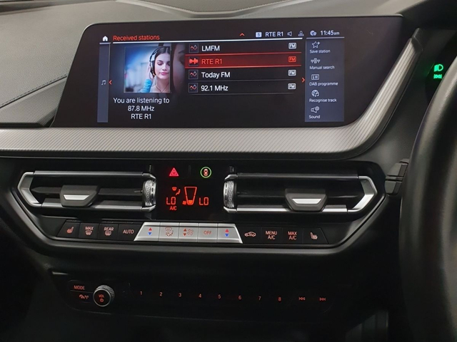 • • Apple CarPlay • Bluetooth • Connected drive • DAB Radio • Harman Kardon Surround Sound • Active Cruise Control with ''Stop and Go'' • Automatic Start / Stop • Cruise control • Front LED Foglights • M Sport Suspension • LED headlights • M Sport Exterior Styling • Extended storage • Floor mats. velour, • Front Heated Seats • Front Sport Seats • M Sport Leather Steering Wheel • Sun Protection Glass • Parking Assistant • 18" 554M V-spoke style Orbit Grey alloy