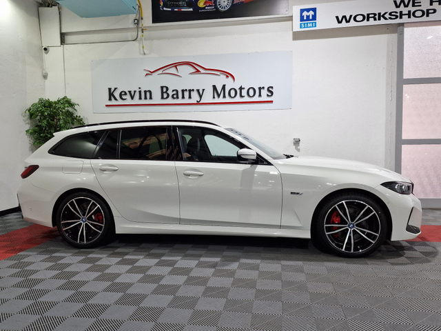 2022 (222) BMW 330e Touring M-Sport LCI (Pro Pack) 290BHP Automatic presented in Alpine White with Half Leather & Alcantara Upholstery. One Owner car from new which comes complete with a Full BMW Main Dealer Service Record, Full SIMI History Report and with a Spare Key. Low Annual Road Tax of €140. Top spec model which comes fully equipped with - 19inch Bi-Colour M-Sport Alloy Wheels - Air Conditioning - Automatic Lights & Wipers - Auto High Beam Assist - Adaptive LED Headlights - Adaptive M Suspension - Apple CarPlay & Android Auto Supported - Ambient Interior Lighting with Colour Change Options - USB/C Connections - BMW Individual Shadowline Headlights - BMW Digital Live Cockpit Plus - BMW Drive Experience Control - BMW Intelligent Personal Assistant - Bluetooth Integration with Audio Streaming - Centre Armrest - Cruise Control with Speed Limiter - DAB Digital Radio - Tri Zone Digital Climate Control - Electric Folding Door Mirrors - Electric Bootlid - Front & Rear Parking Assist - Gloss Black Shadowline Exterior Trim - Gloss Black Front Grill - Heated Front Seats - Lane Departure Warning - LED Rear Lights - Multi-Function Leather Steering Wheel - M Sport Bodystyling - M Sportbrakes (Red High Gloss) - M Seat Belts - Professional Navigation System - Reverse Camera - Rear Sun Protection Glass - Roof Rails - Screen Mirroring - Split Folding Rear Seats - Push Button Start - Twin Exit Exhausts - Wi-Fi Connectivity - Isofix System and much more... This car will be sold Fully Serviced, 2 x Charging Cables, 12 Months Unlimited Mileage Warranty and with 24 Hour Nationwide Roadside Assistance. Kevin Barry Motors are an award winning car dealership having won "Carsireland - Best Presented Cars in Leinster for 2024". Most trade ins accepted and competitive finance can be arranged. Please call or email our sales team today for any further details.