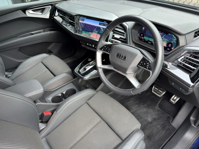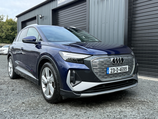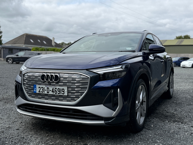 231 Audi Q4, S-line, 500 Km Range, Bang & Olufsen, Cruise Control, Matrix Audi Lights, Lane Departure, Comfort Seats, Reversing Camera 360 View, Self Parking, Dynamic Lights, Front And Back, Ambient Lights, High Beam Assist, Folding Mirrors, Collision Prevent, Google Maps, Blind Spot Assist, Keys Less Entrance, Ambient Lights Change Colour, Full Service History, 2 Keys One Owner 94% Battery 2 Stamps Audi 12 Months Warranty Finance Available Central Locking, Electric Windows, Airbag, Rear Spoiler, Privacy Glass, Centre Armrest, Multi-function steering wheel, Roof Rails, Satellite Navigation, Traction Control, Metallic Paint, Anti-Theft System, Parking Sensors, Bluetooth, Isofix, Active Safety Braking / City Brake / Collision Alert, External Devices Connectivity, Cup holders, Remote boot/hatch/rear door release, Stability control